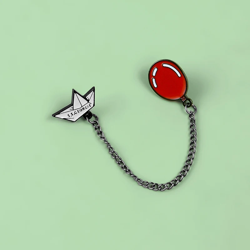 Эмалевые булавки из мультфильма SS, Джорджи, броши с красными шарами из бумаги, лодкой, цепочкой, клоуном, Стивеном, Кинг, Значки из фильма ужасов, ювелирные изделия, подарки