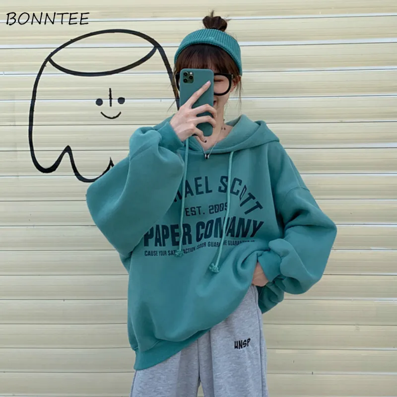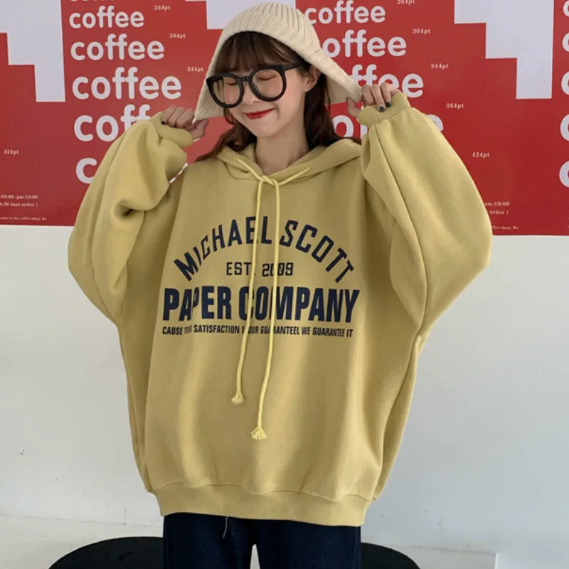 Женские толстовки с надписью, средней длины, теплые, Harajuku Bf, женские, в Корейском стиле, с карманами, для студентов, свободные, повседневные, Новые поступления
