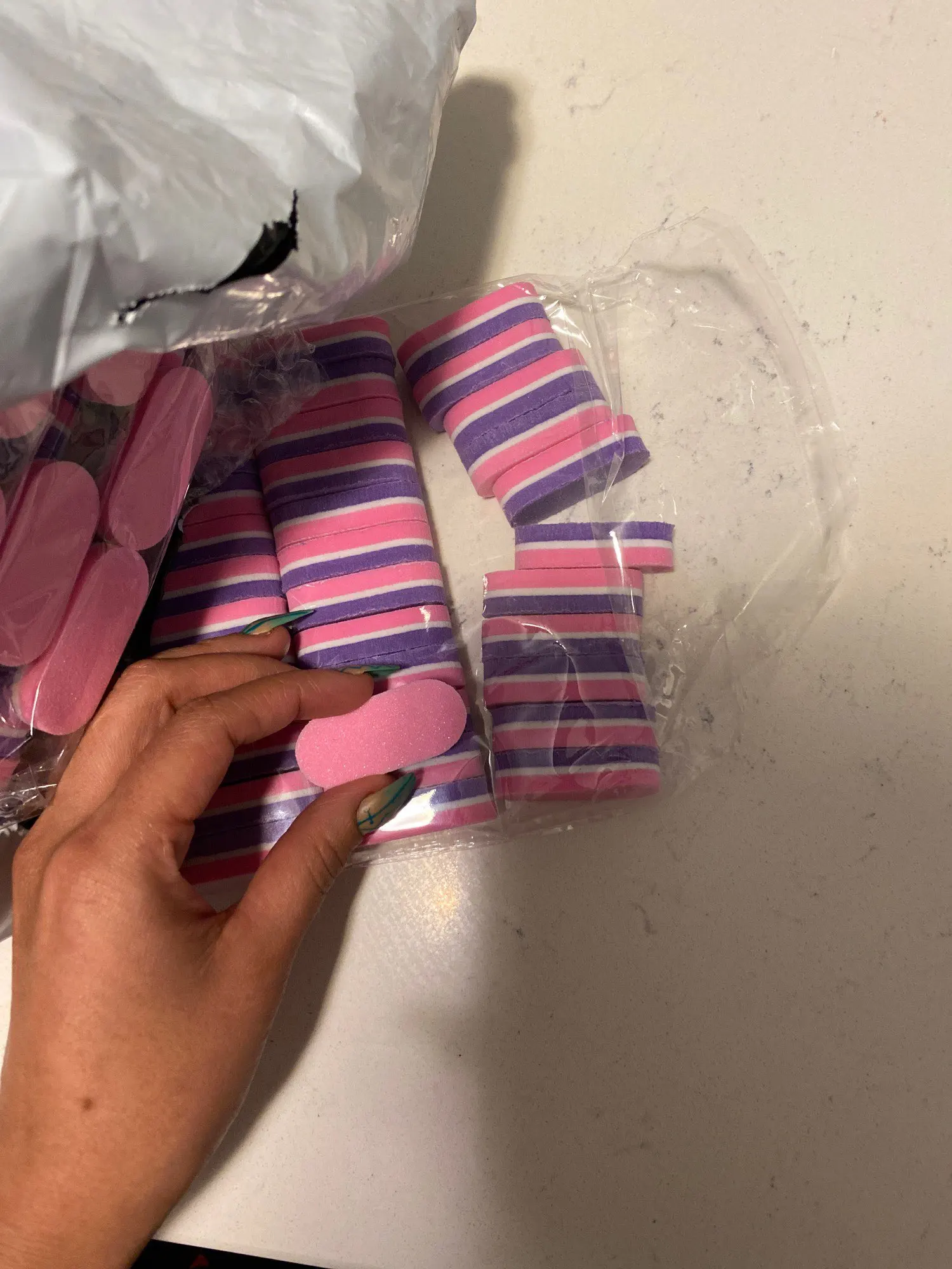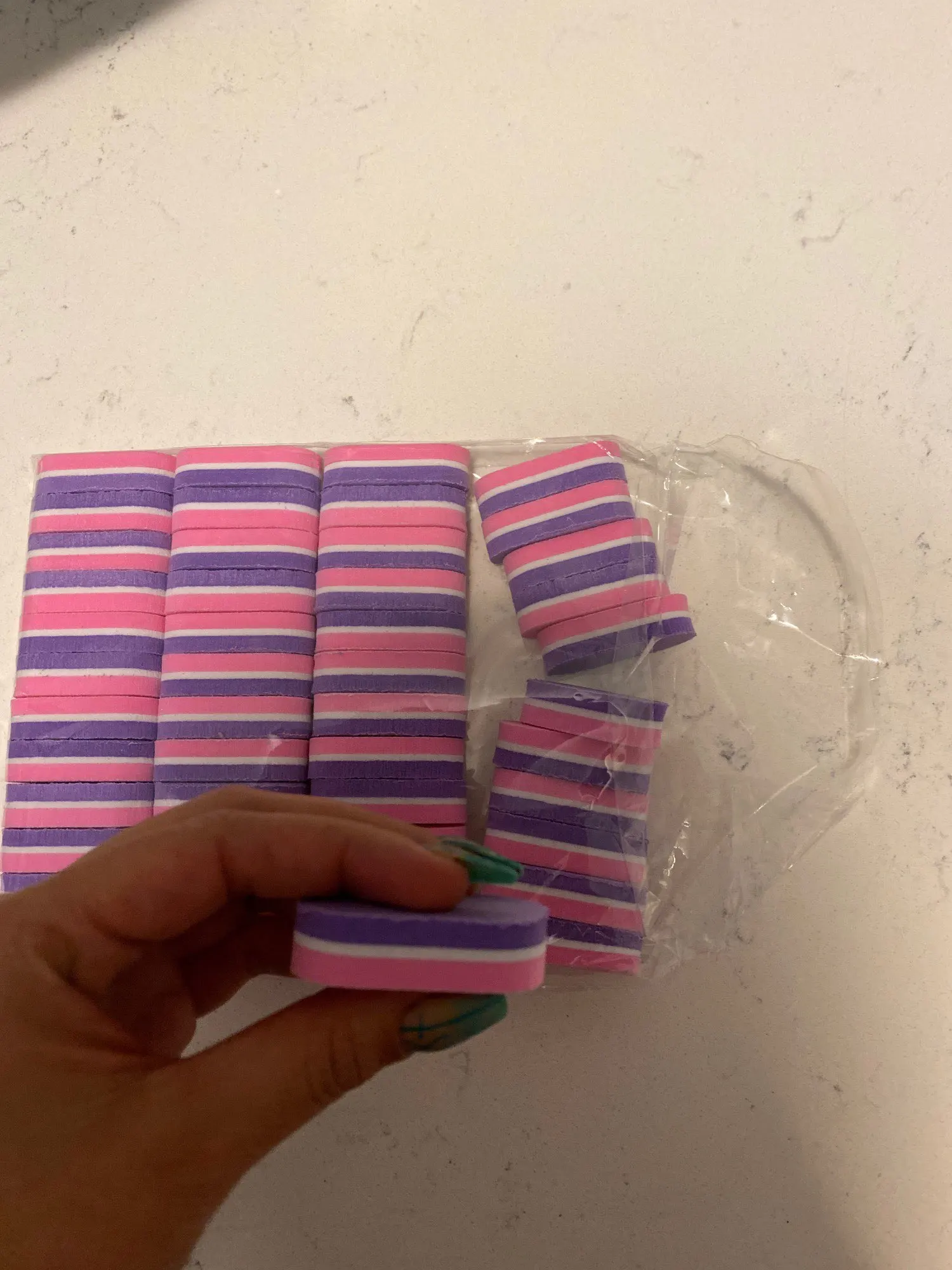 Очень удобны бафики в использовании, приспособилась быстро к размеру. Надоело дезинфицировать большие бафы и решила заказать маленькие для одноразового использования. Ни чуть не пожалела об этом! Теперь не трачу время на мытьё и стерильно для каждого клиента.