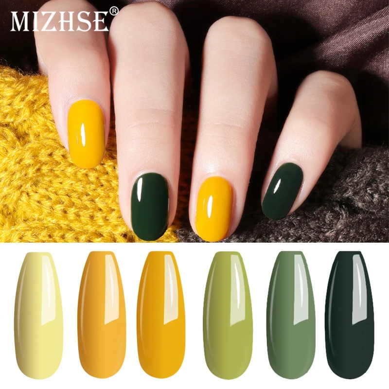 Гель-лак MIZHSE УФ светодиодный для ногтей лак для маникюра чистый цвет ногтей серия желтый и зеленый лак гель Праймер
