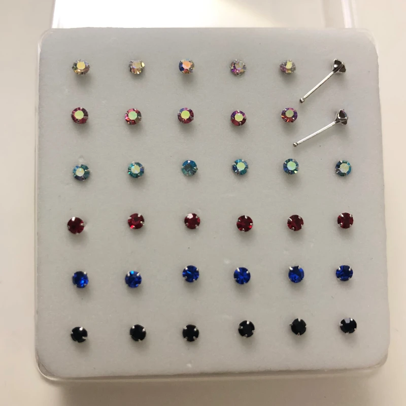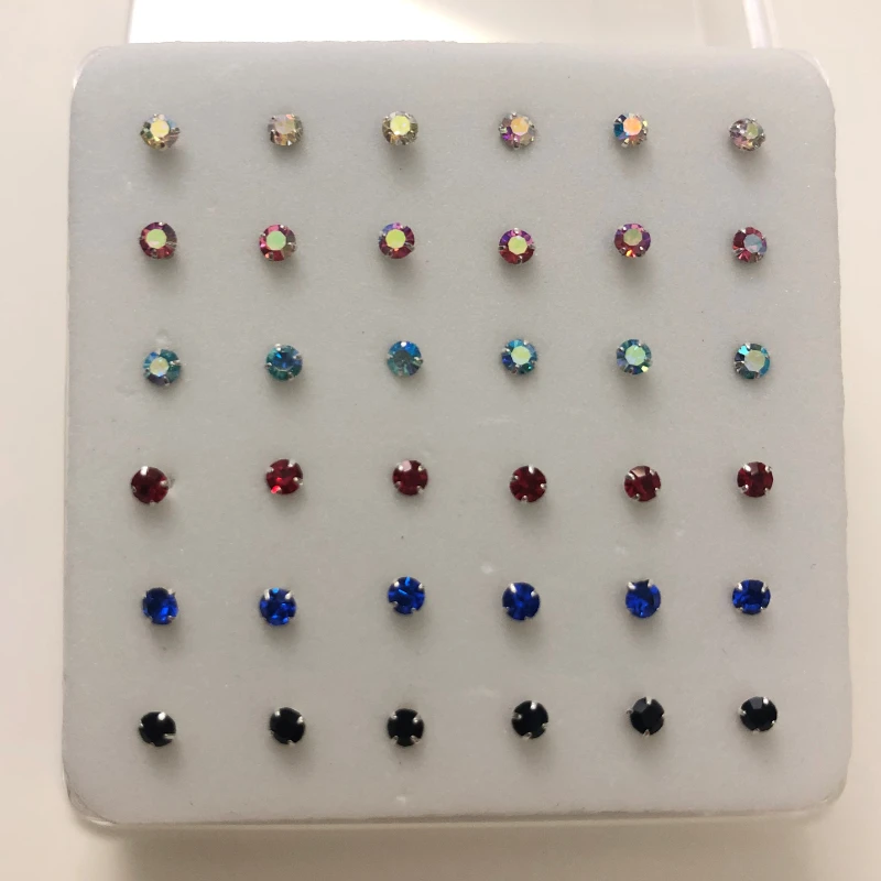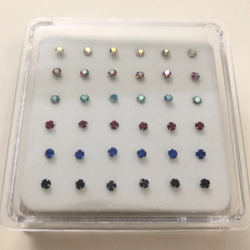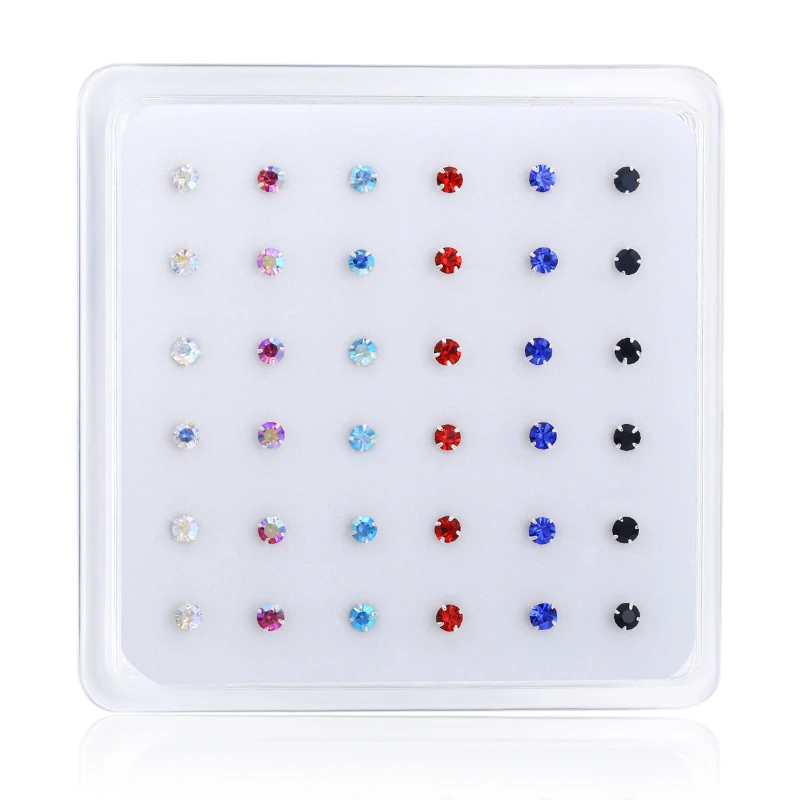 36 шт. 925 стерлингового серебра кольца и штифты для носа 1,5/2/2.5/3 мм прозрачный радужной расцветки с украшением в виде кристаллов Золотой пирсинг ювелирные изделия слуховая косточка Для ногтей оптом