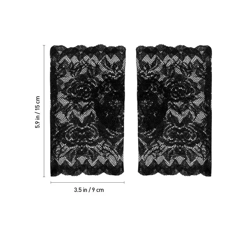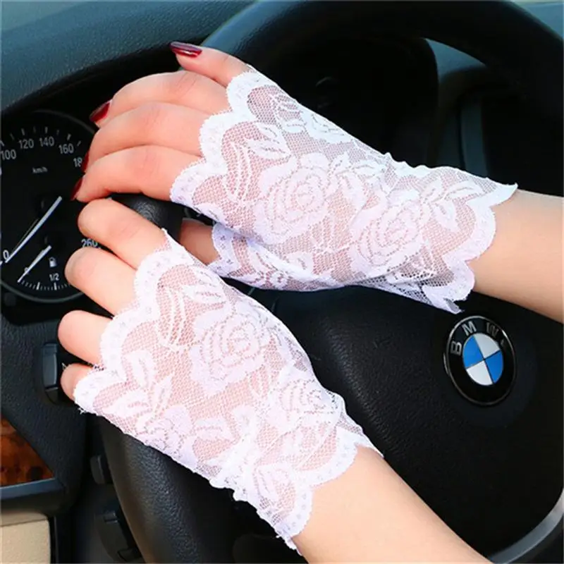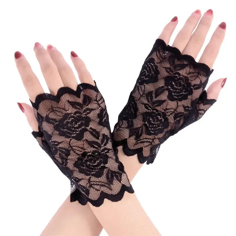 Женские свадебные перчатки с открытыми пальцами, черные кружевные перчатки с защитой от солнца, без пальцев, для вождения