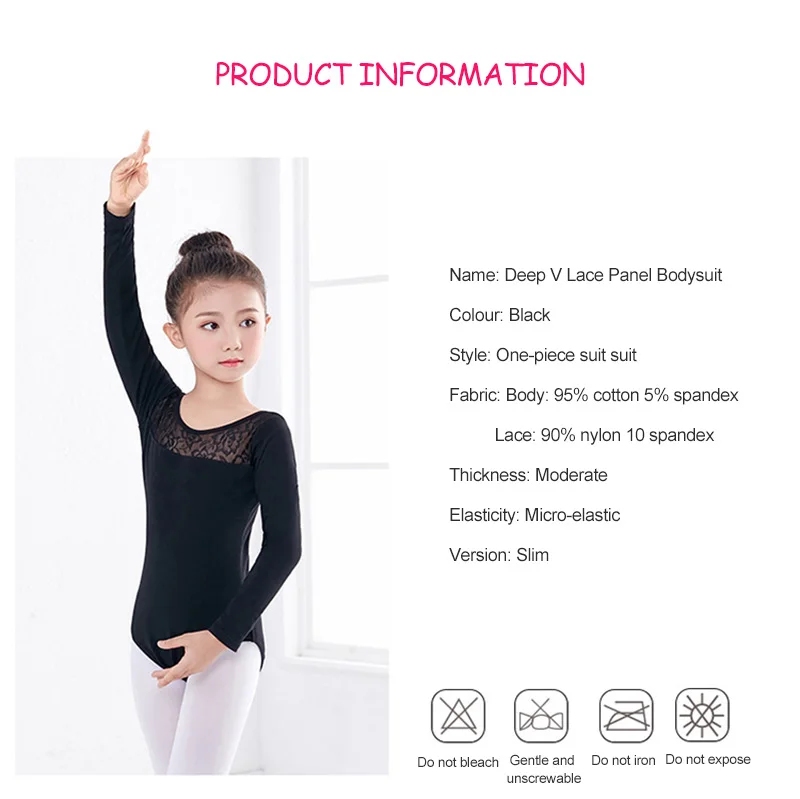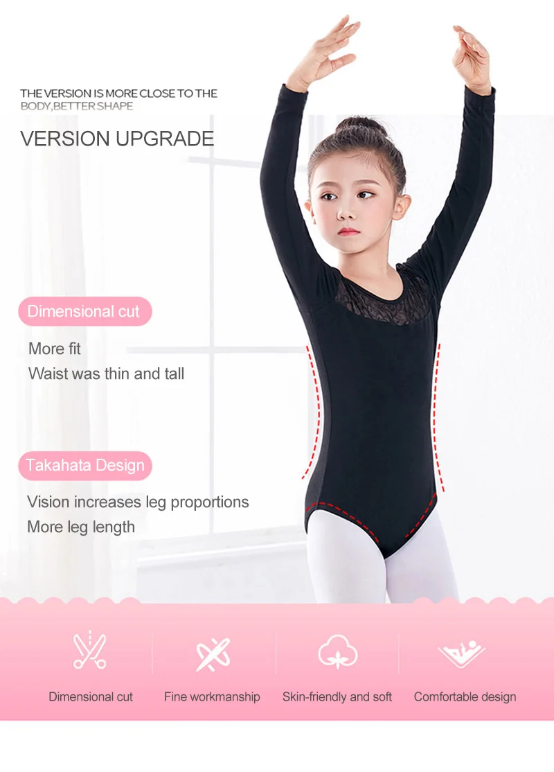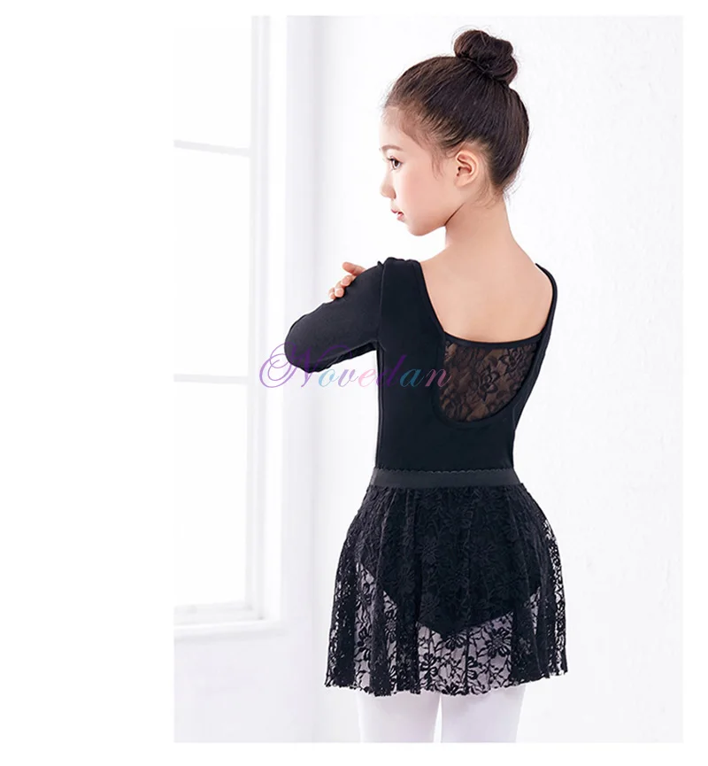 Черные кружевные балетные трико для девочек, детские гимнастические балетные костюмы с длинным рукавом, Одежда для танцев, Детские гимнастические трико