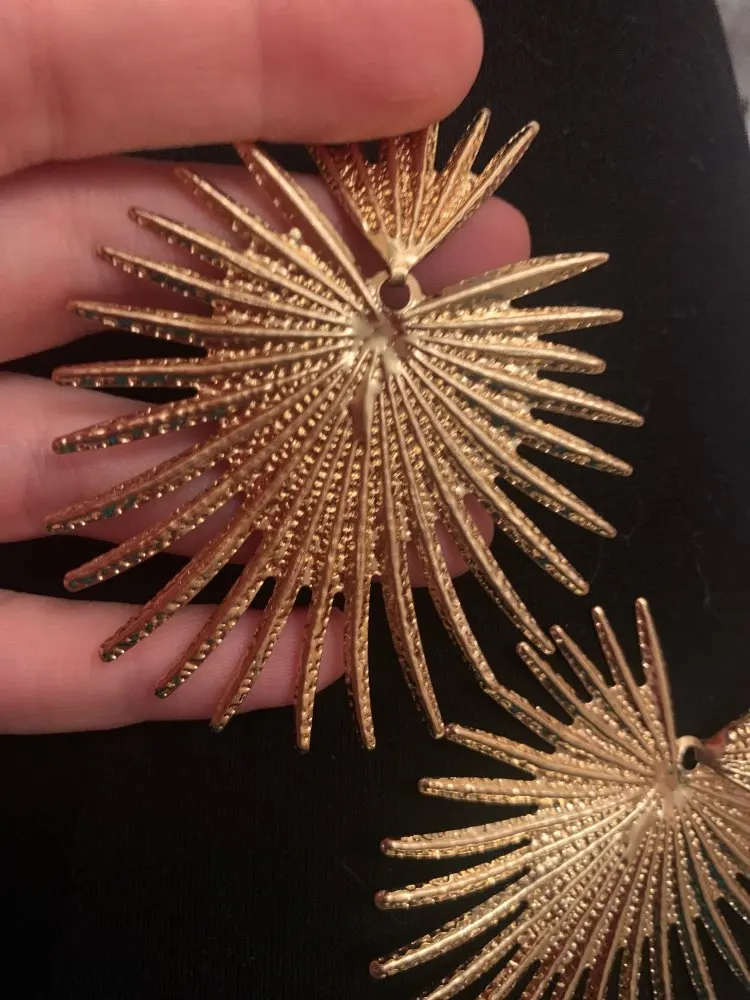 Красивые большие тяжелые доставка быстрая. Звезду сняла потому что очень тяжелые носить не смогу после часа заболели уши