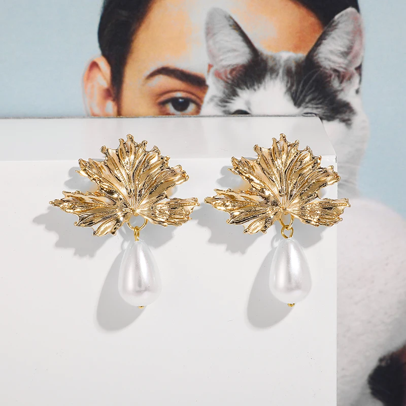 Серьги-подвески женские в форме цветка, с жемчугом и листьями