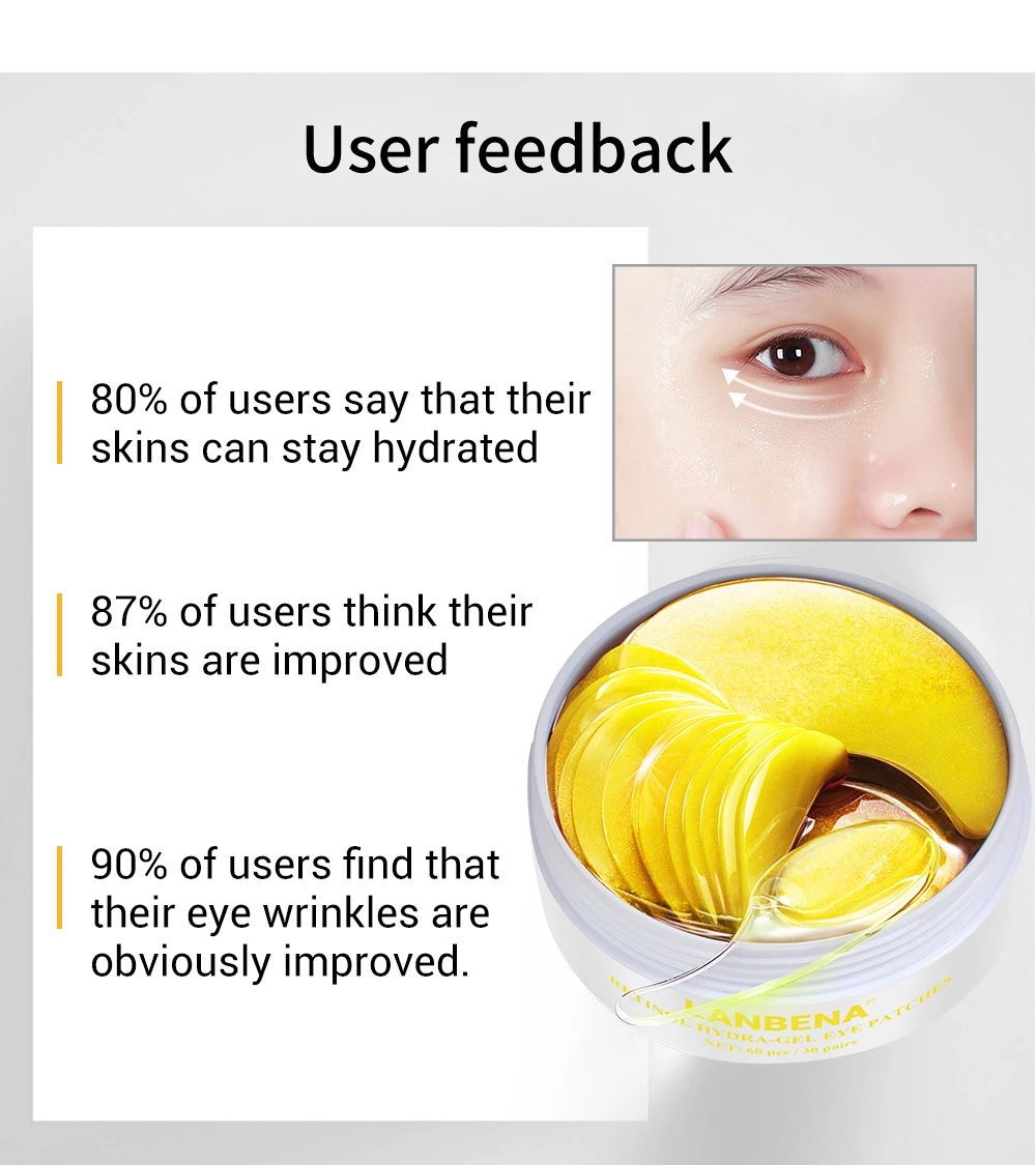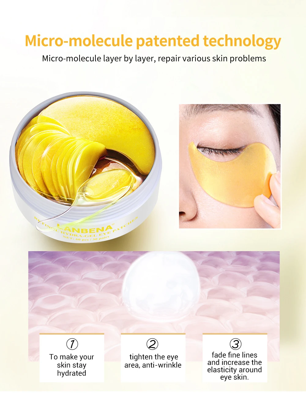 Патчи LANBENA золотистые для глаз против морщин выцветает с тонкими...