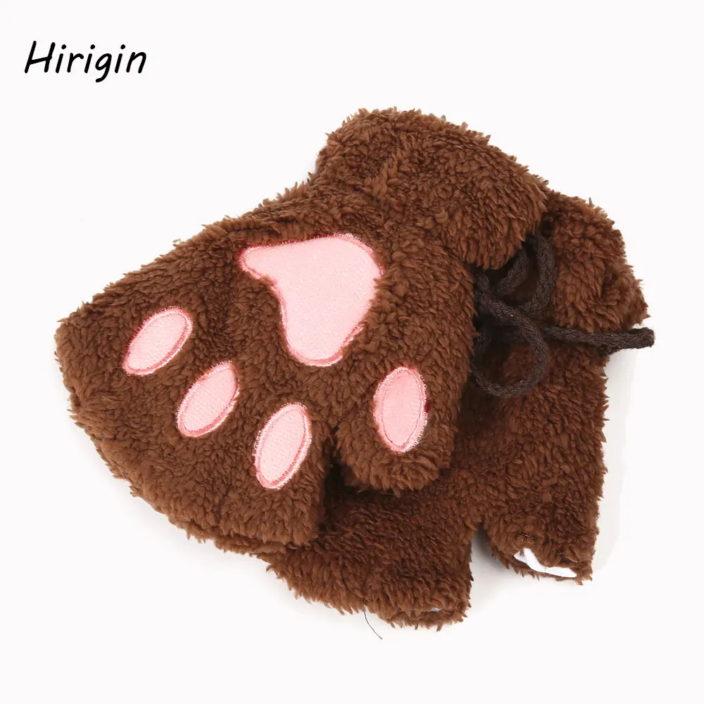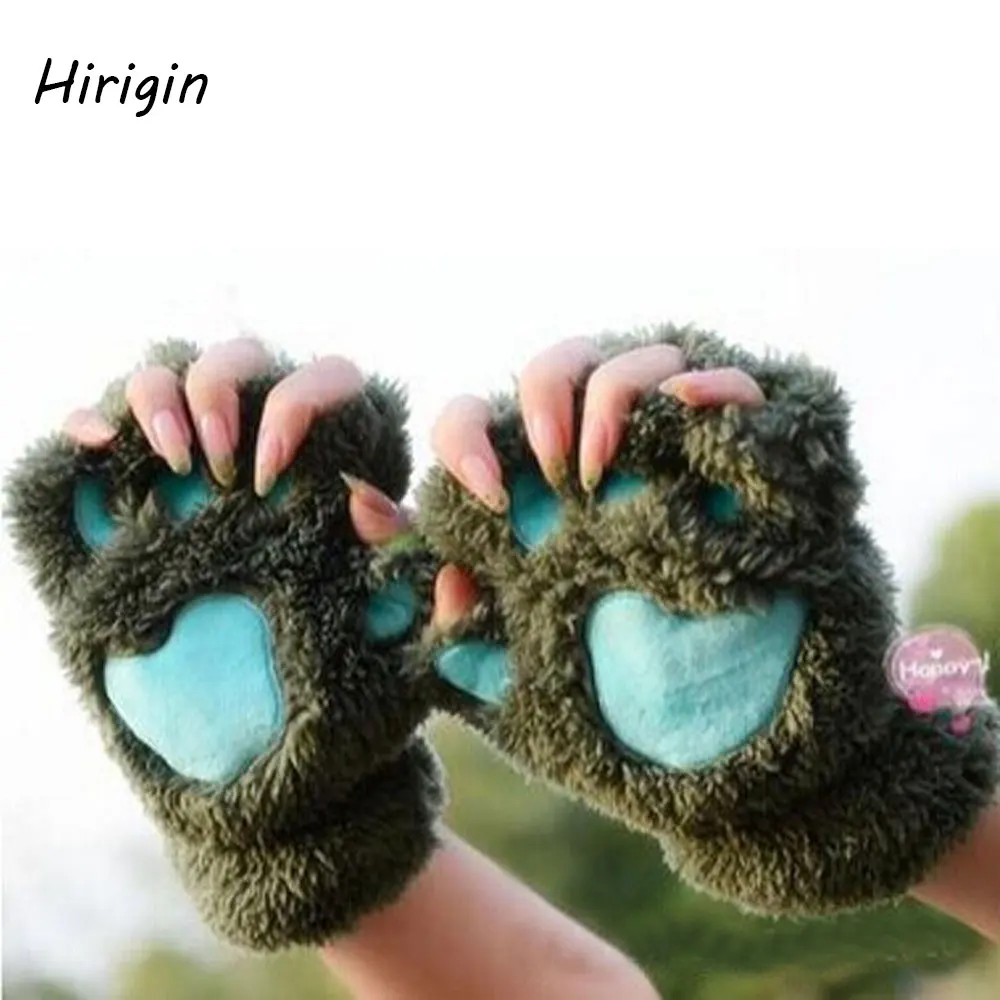 Милые пушистые перчатки с медвежонком и когтями для девочек 2020, зимние теплые перчатки без пальцев с плюшевой лапой, 6 цветов