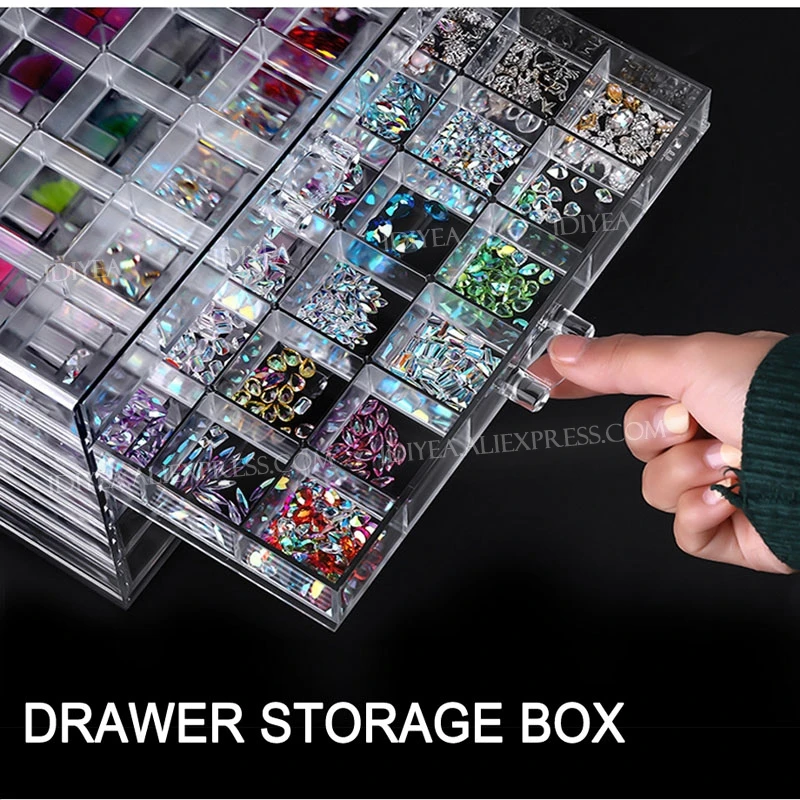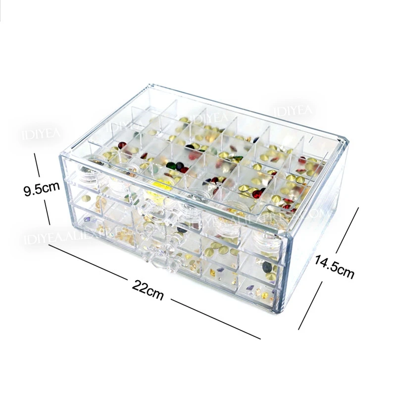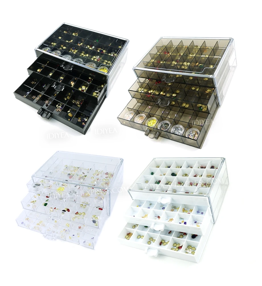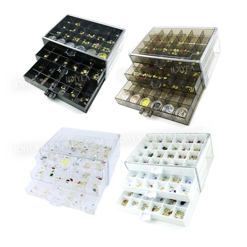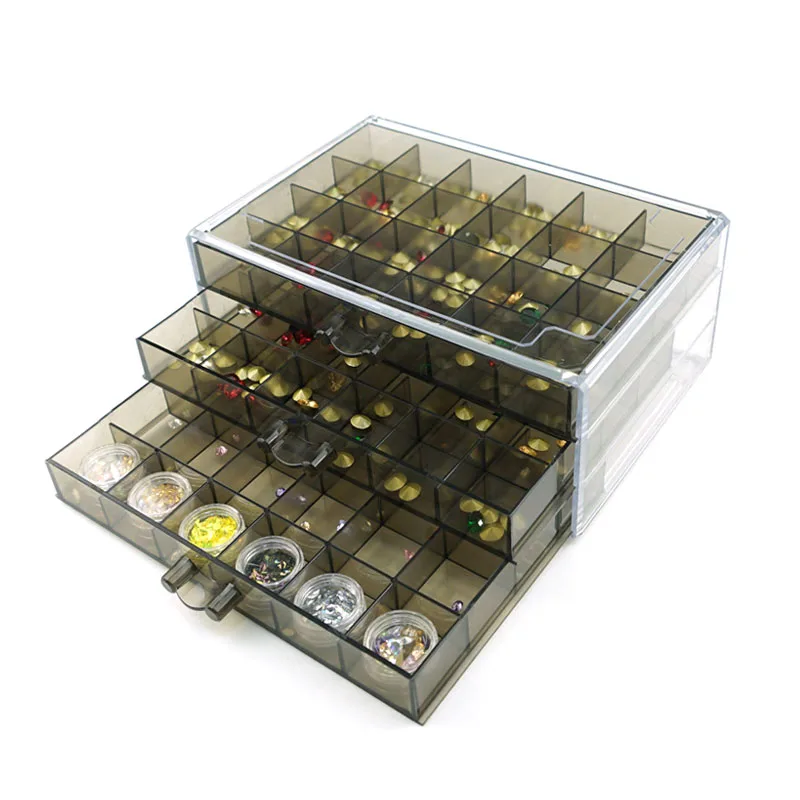 Ящик для ювелирных украшений, 72 слота, 3-х слойный пластиковый акриловый Органайзер, контейнеры для хранения инструментов сделай сам, аксессуары для ногтей, бисера, рукоделия