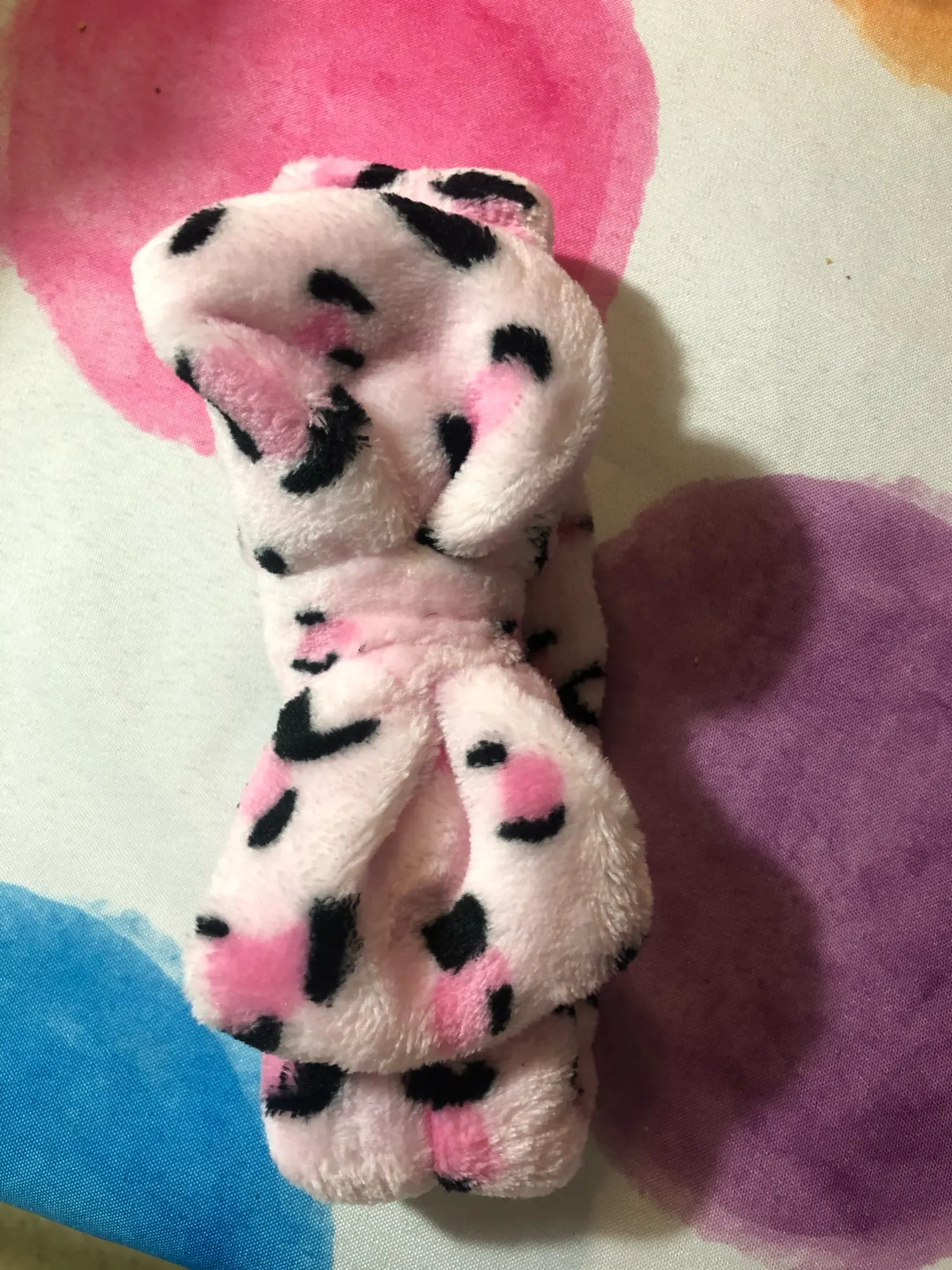 Повязка на голову, корейский стиль, плюшевая повязка на голову с принтом в горошек и бантом, мягкая резинка для волос, для макияжа, эластичная чалма, аксессуары для волос