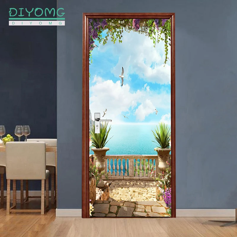 3D обои для двери наклейки самоклеющиеся DIY постер пляж море пейза...