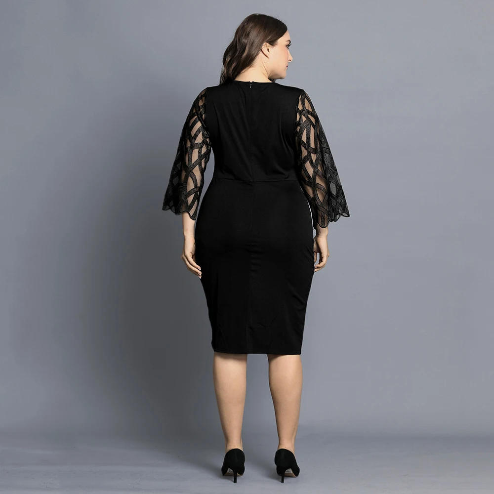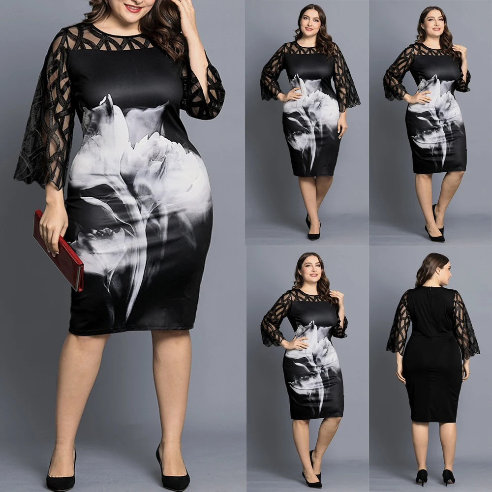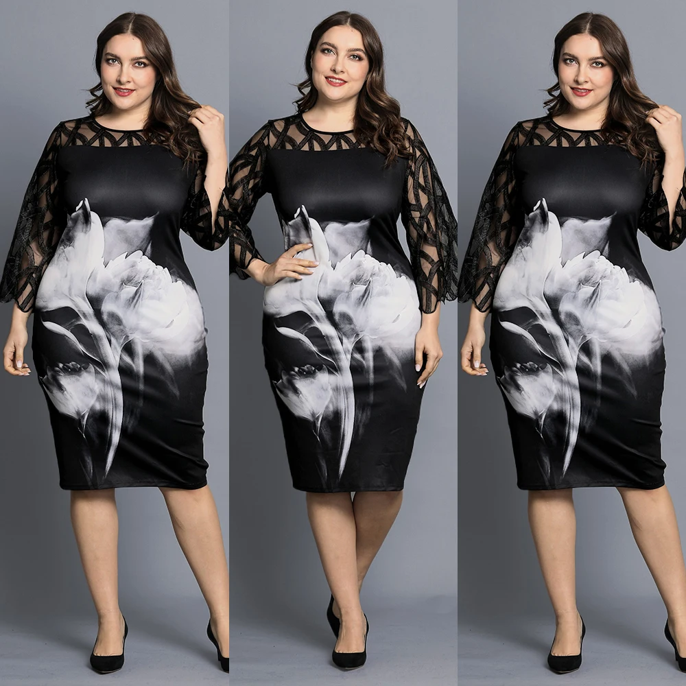 Женское Полупрозрачное платье с геометрическим рукавом, винтажное вечернее платье с цветочным принтом, размера плюс 6XL, D30