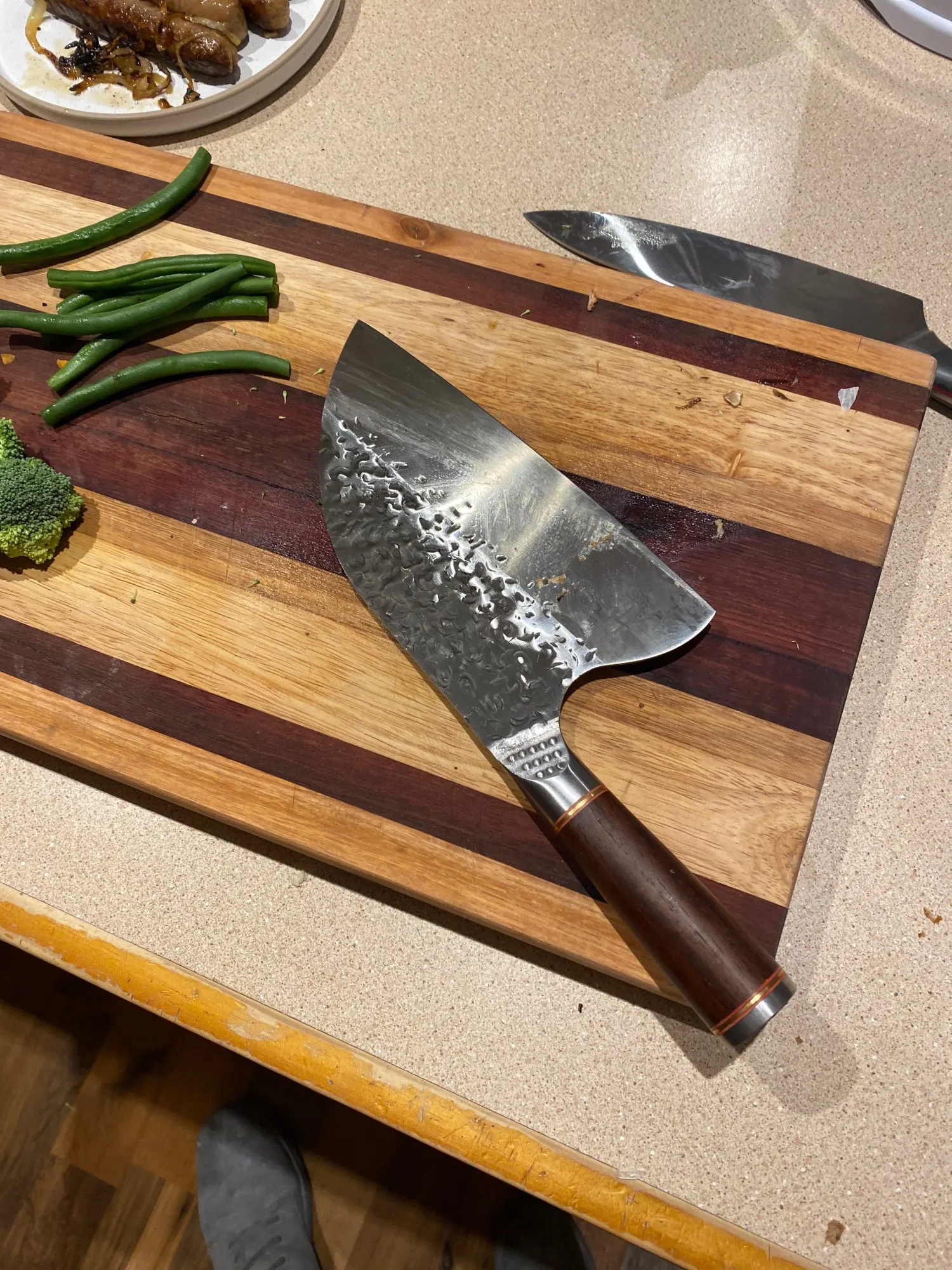 Прибыл до предполагаемой даты .. Нож очень острый Но не такой тяжелый, как нож для мясника. В противном случае это хорошо.