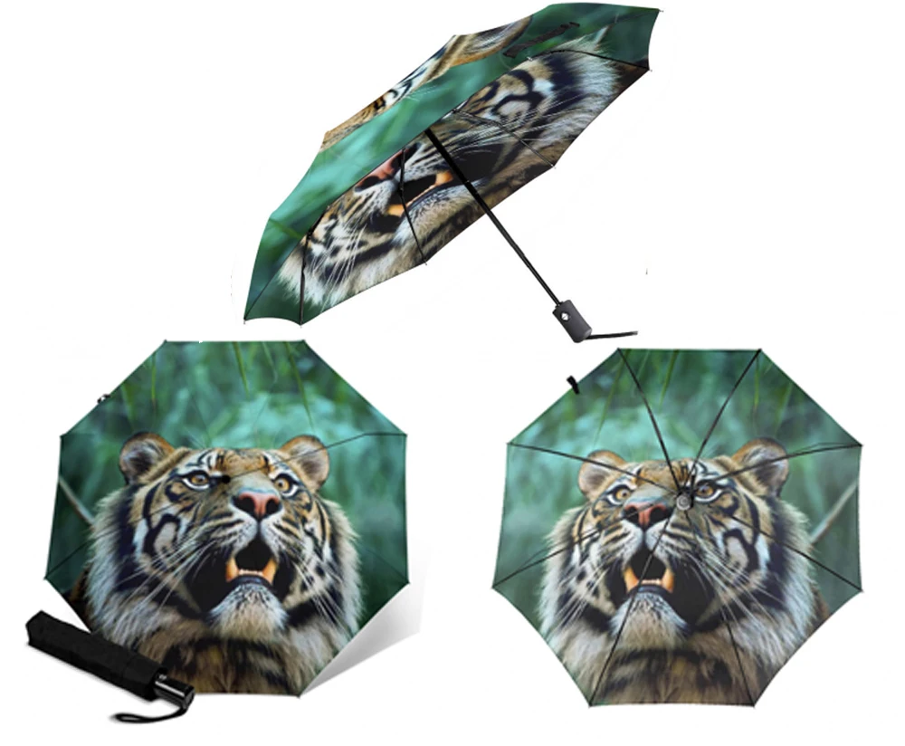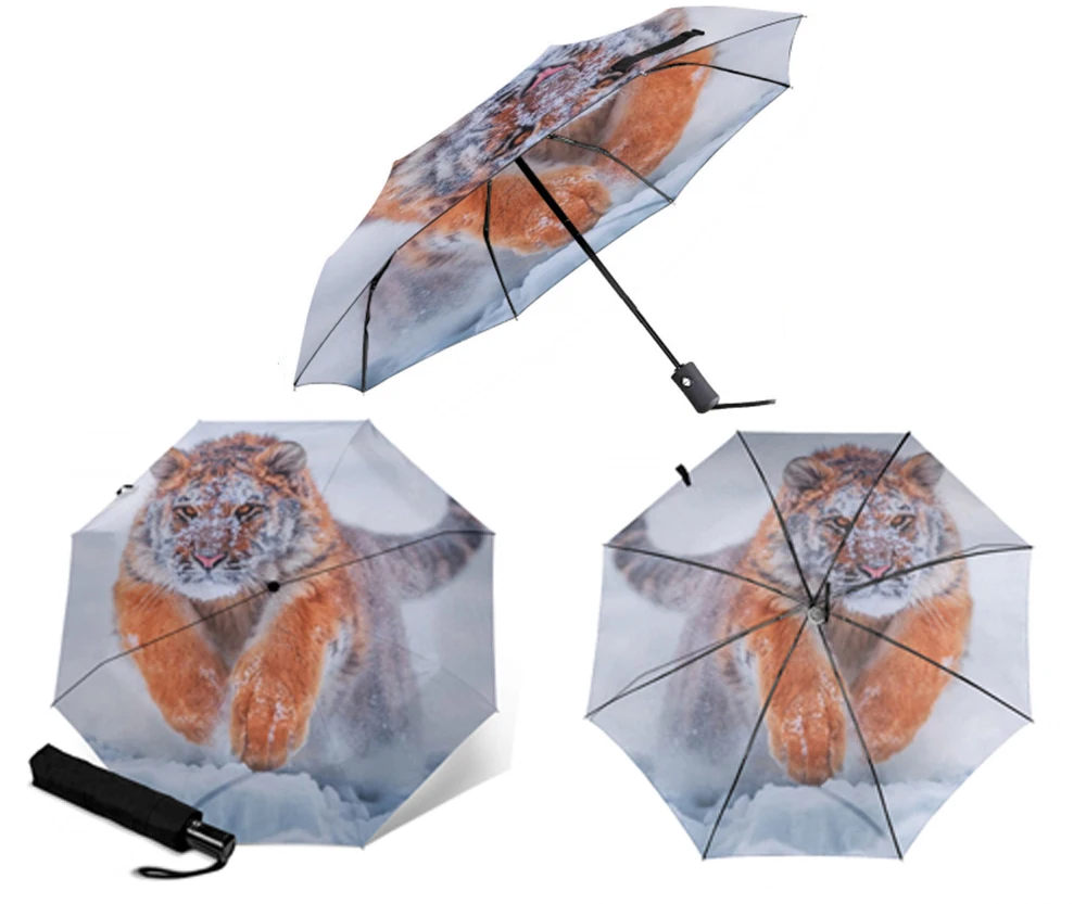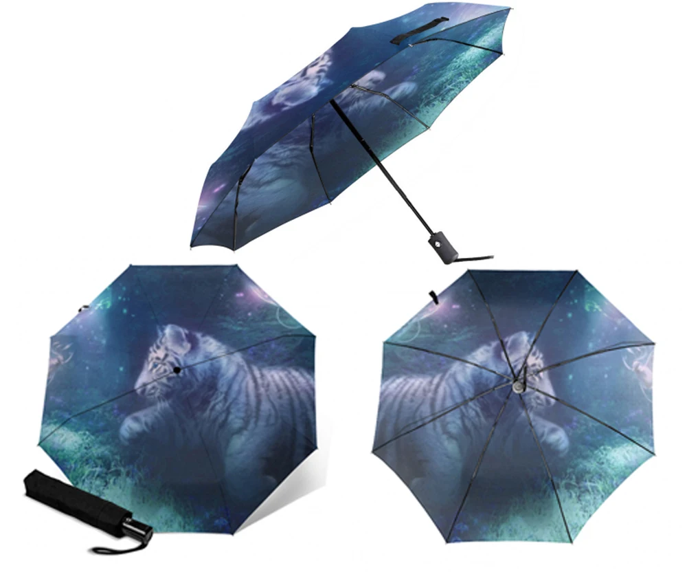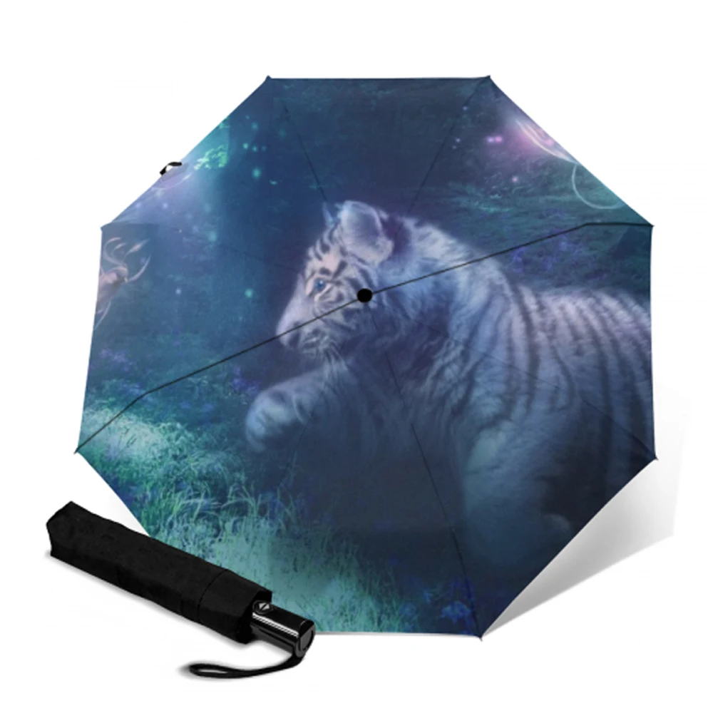 Полностью автоматический зонт, солнцезащитный зонтик для девочек, три складных, для мужчин и женщин, прочные, яркие, солнечные зонты для женщин, дождевик