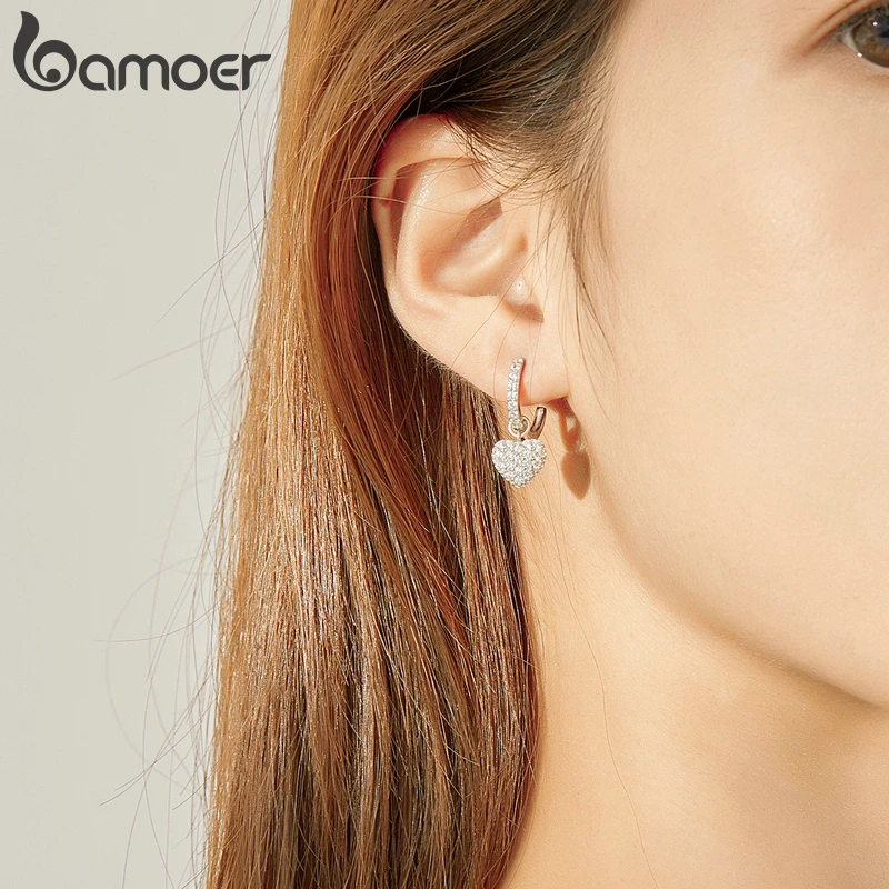 Bamoer модные в форме сердца моно-серьги из натуральной 925 пробы С...
