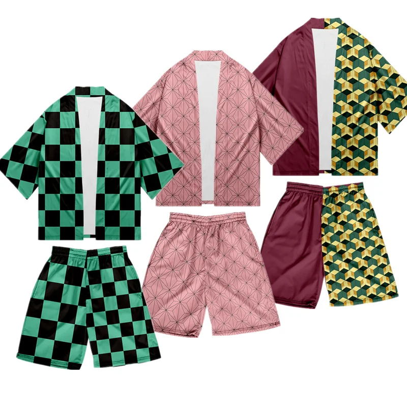 Костюм рассекающий демонов Kimetsu no Yaiba, костюм камадо танджиро, пальто и шорты для косплея, женский костюм томиока Giyuu, мужские топы и шорты