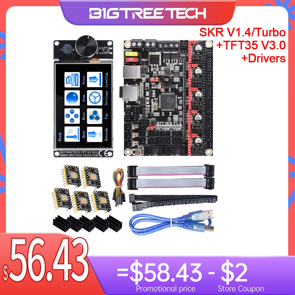 Плата управления BIGTREETECH SKR V1.4, TMC2209, TMC2208 UART, драйвер + TFT35, V3.0, сенсорный экран, плата для 3D-принтера SKR V1.3 PRO MKS