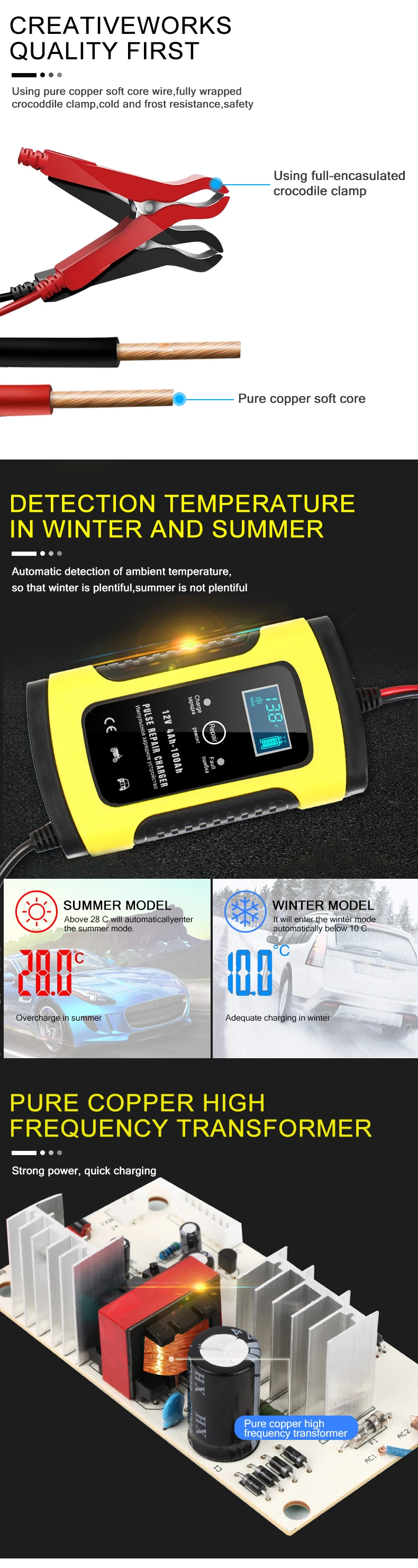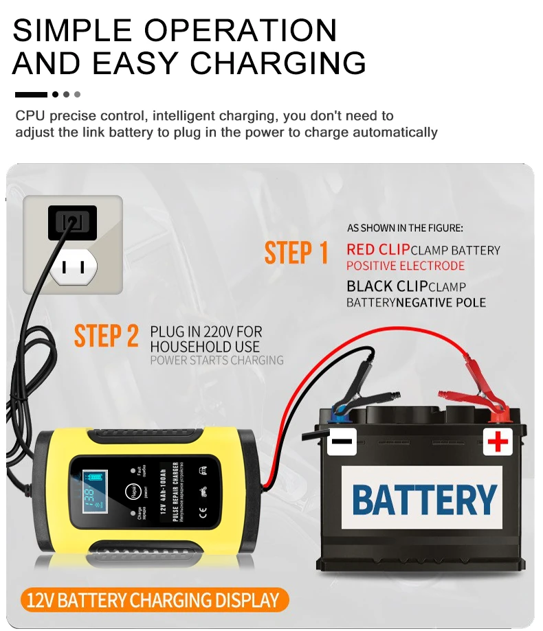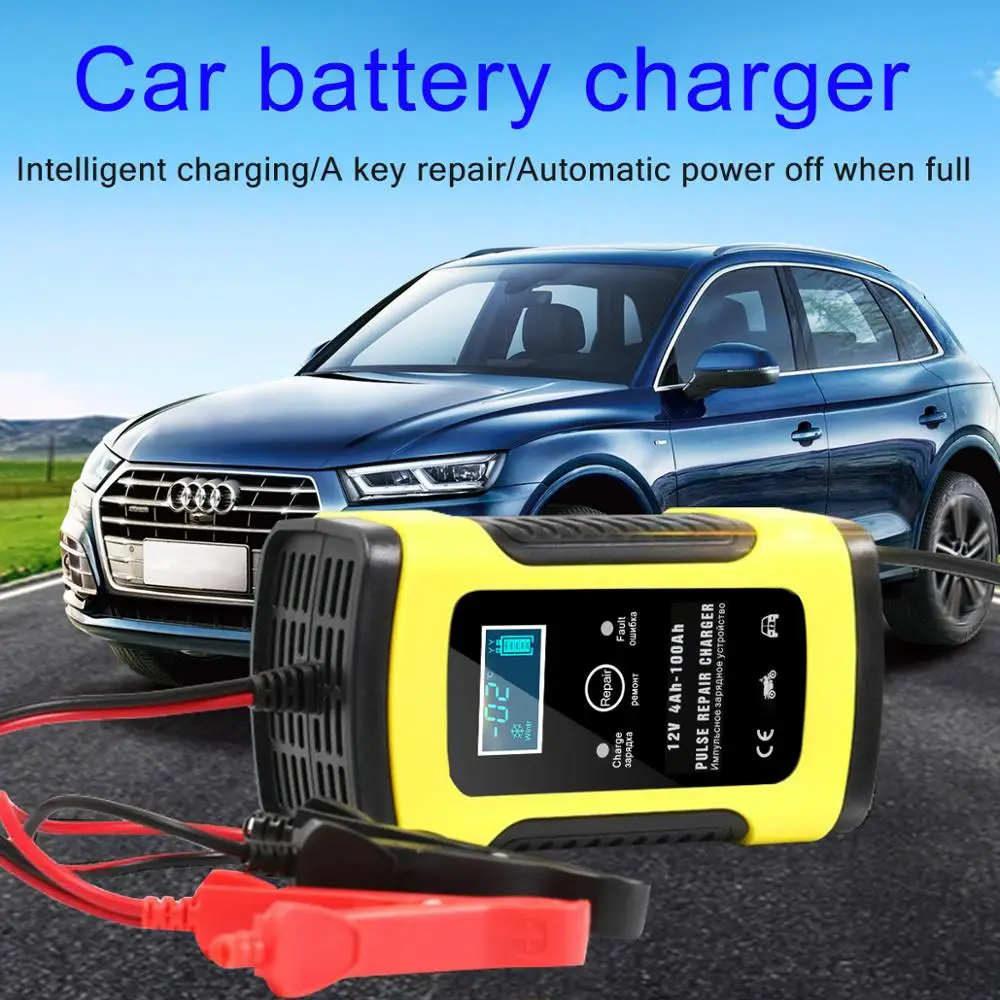 Полностью автоматическое автомобильное зарядное устройство 12 В 6 А 110 В до 220 В с ЖК-дисплеем, умное быстрое зарядное устройство для автомобиля, автомобиля, мотоцикла, зарядка свинцово-кислотных аккумуляторов