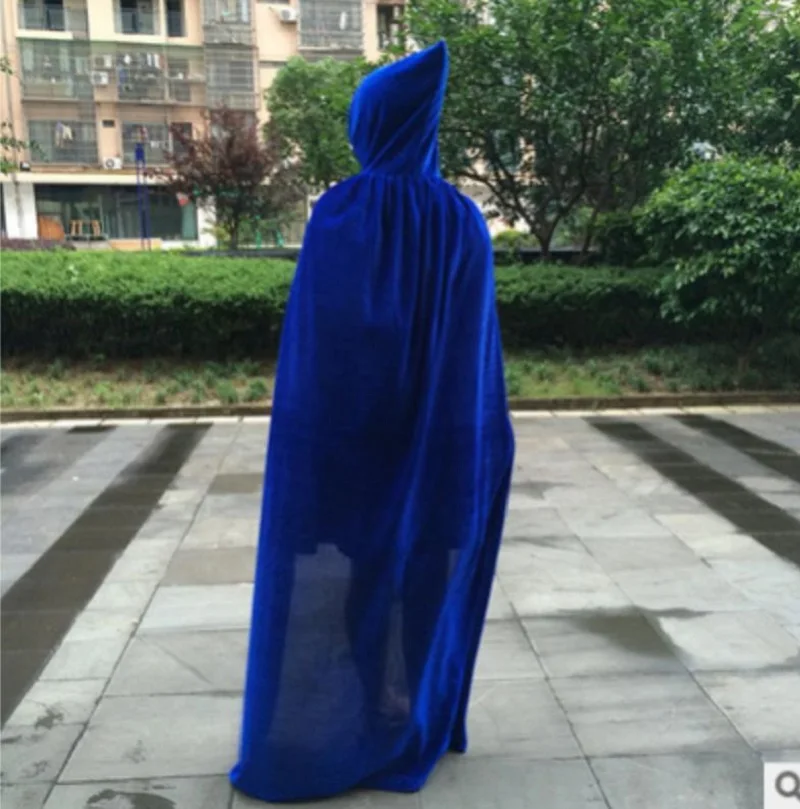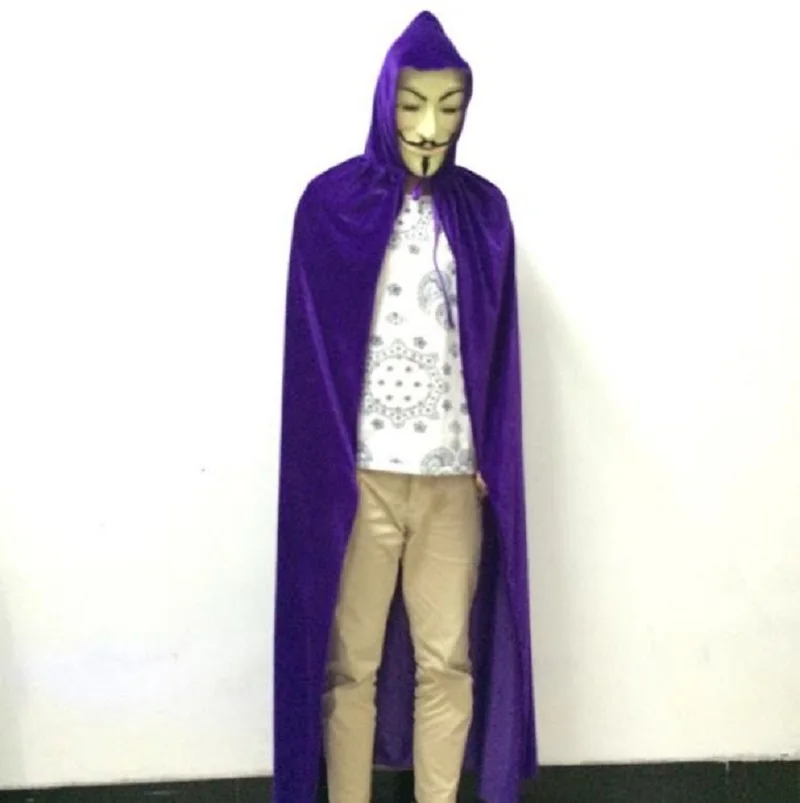 Вельветовый накидка с капюшоном для взрослых, средневековый костюм ведьмы, костюмы вампира для косплея, женская, мужская одежда на Хэллоуин, черный цвет, 170 см
