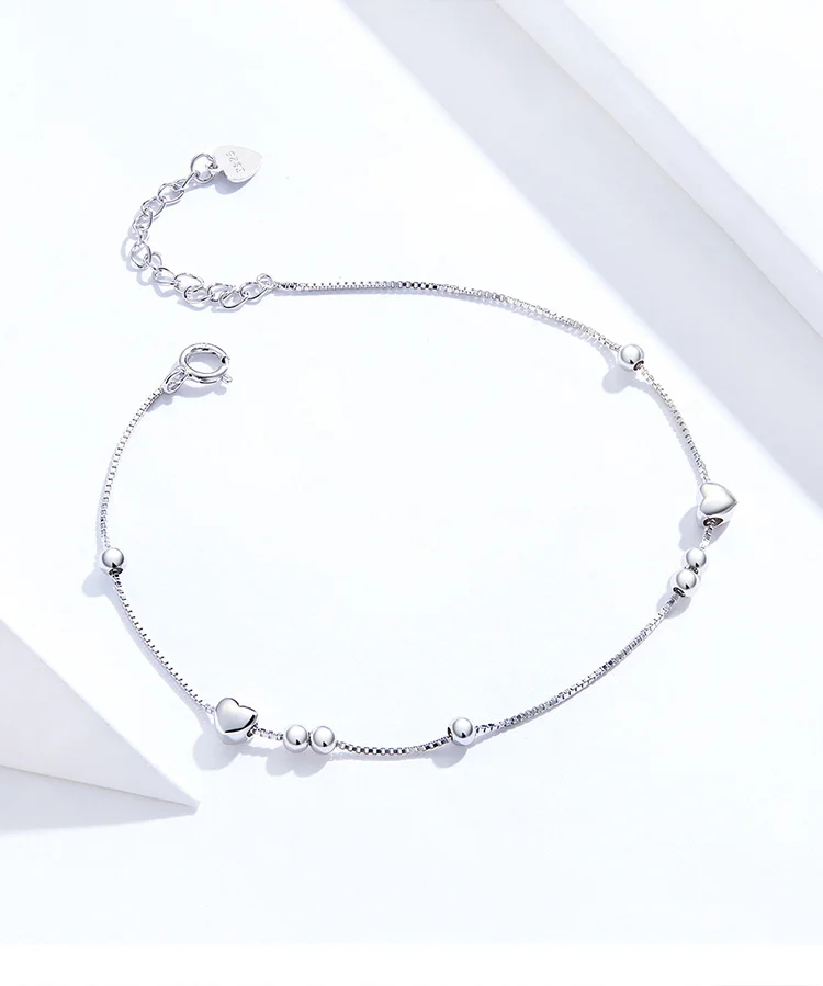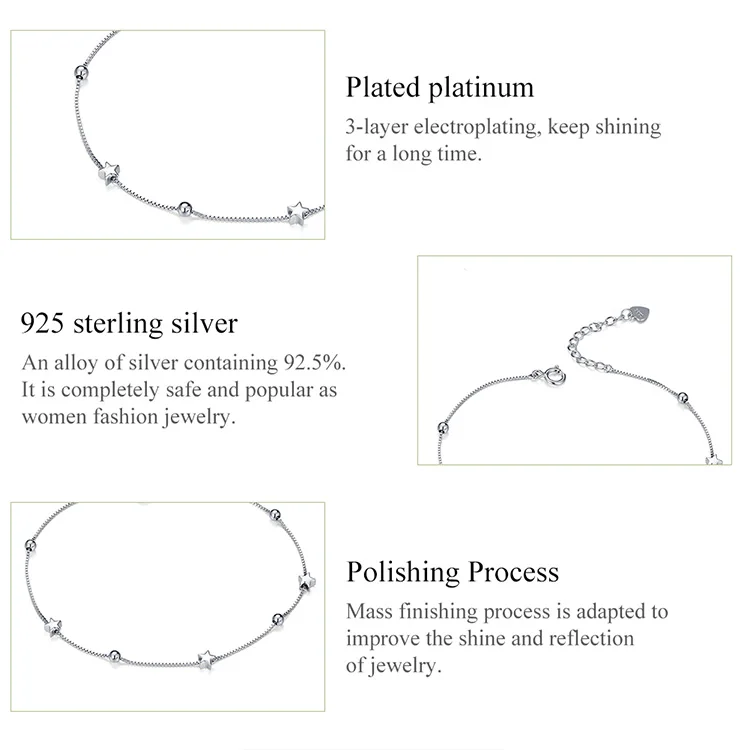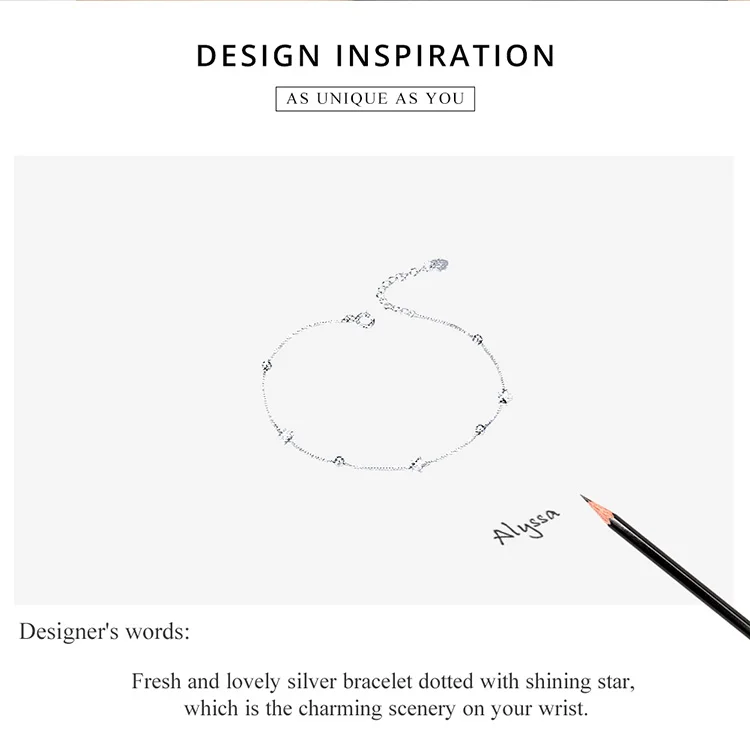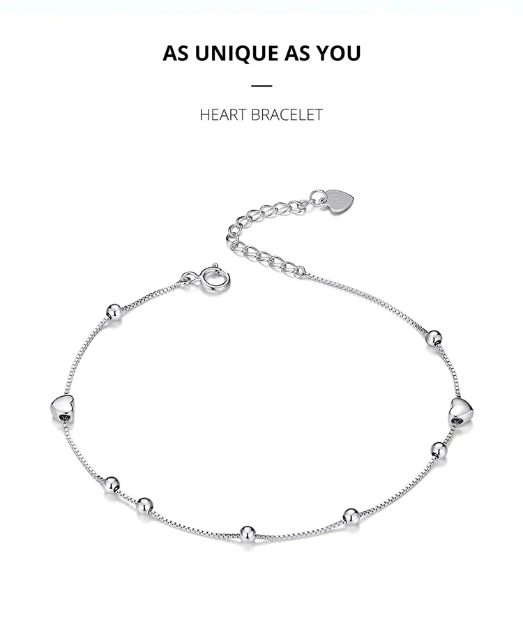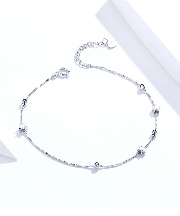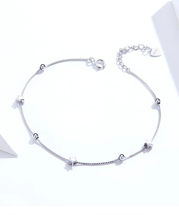 Браслет-цепочка женский из серебра 925 пробы, с сердечком и звездой