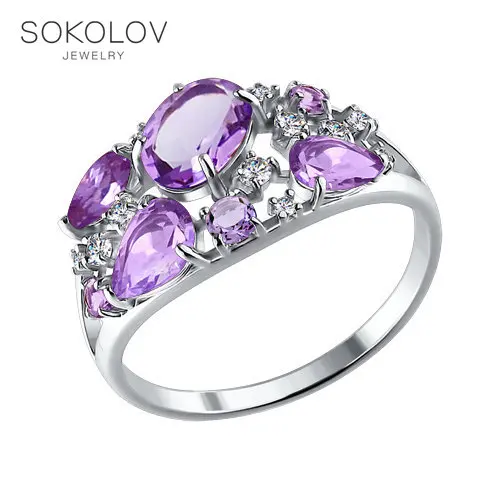 Кольцо SOKOLOV из серебра с аметистами, Серебро, 925, Женское, Ориг...
