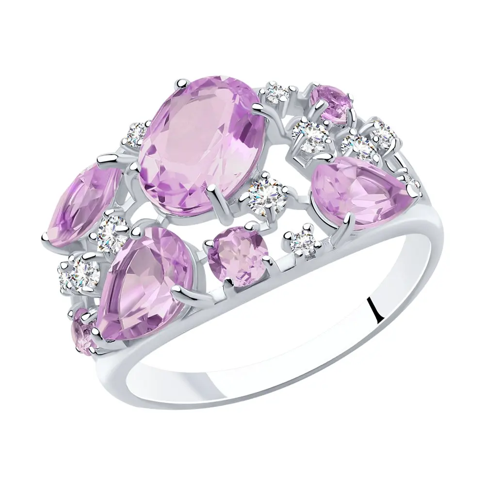 Кольцо SOKOLOV из серебра с аметистами и фианитами, Серебро, 925, Женское, Оригинальная продукция