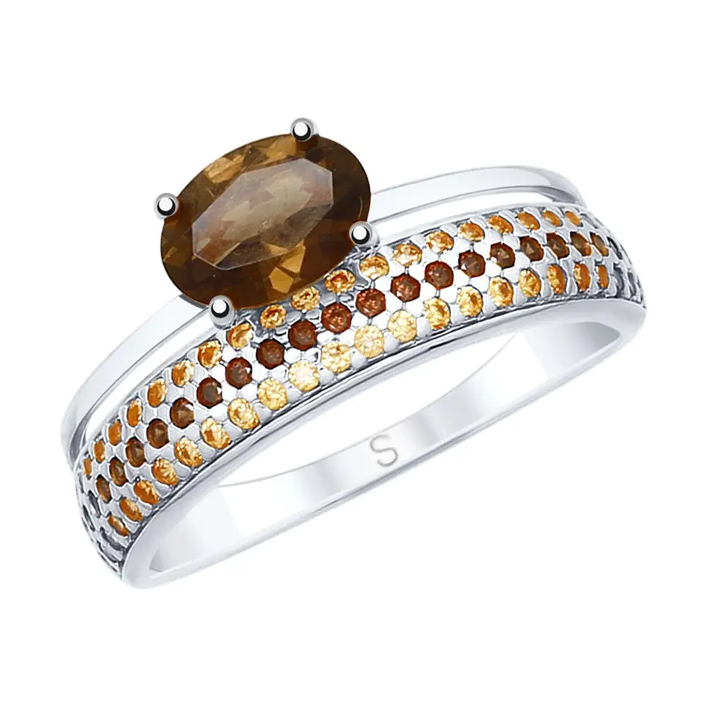 Кольцо SOKOLOV из серебра с раухтопазом и фианитами, Серебро, 925, Женское, Оригинальная продукция