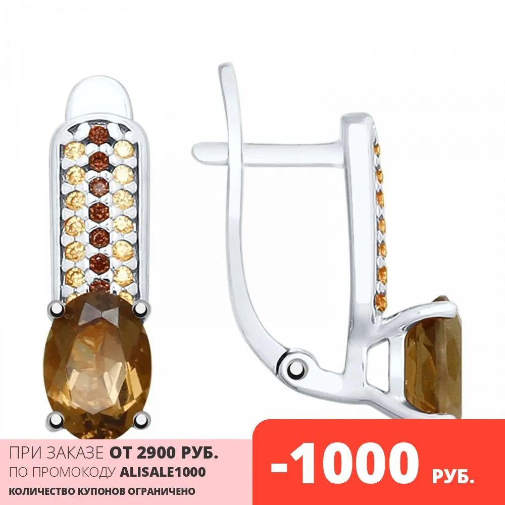 Серьги SOKOLOV из серебра с раухтопазами и фианитами, Серебро, 925, Женские, Серьги 2022 тренд, Оригинальная продукция