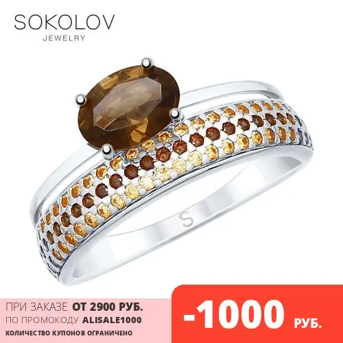 Кольцо SOKOLOV из серебра с раухтопазами, Серебро, 925, Женское, Ор...
