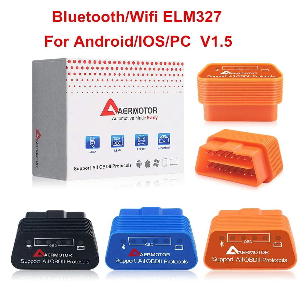 Оригинальный диагностический сканер Aermotor Wifi ELM327 V1.5 Bluetooth 4,0 ELM 327 1,5 OBD2 работает ELM327 Android IOS Windows