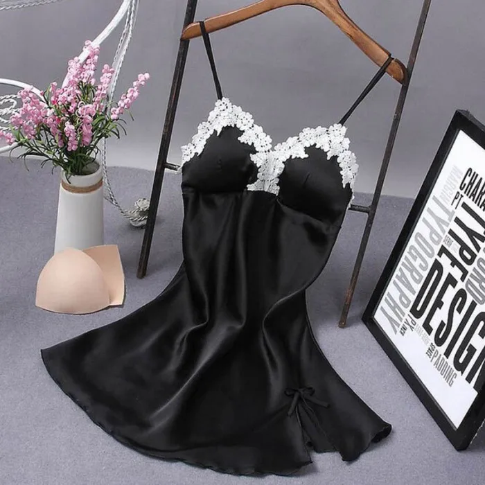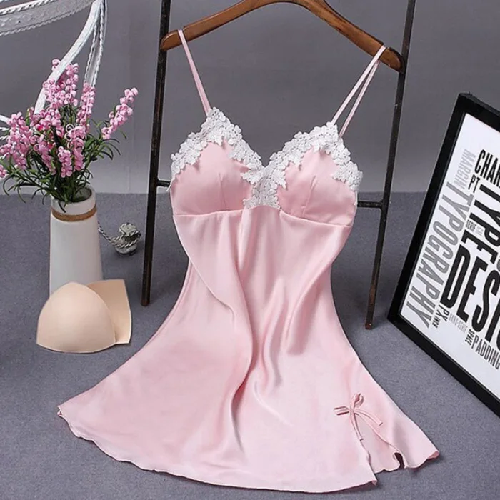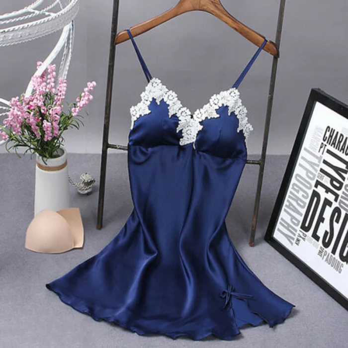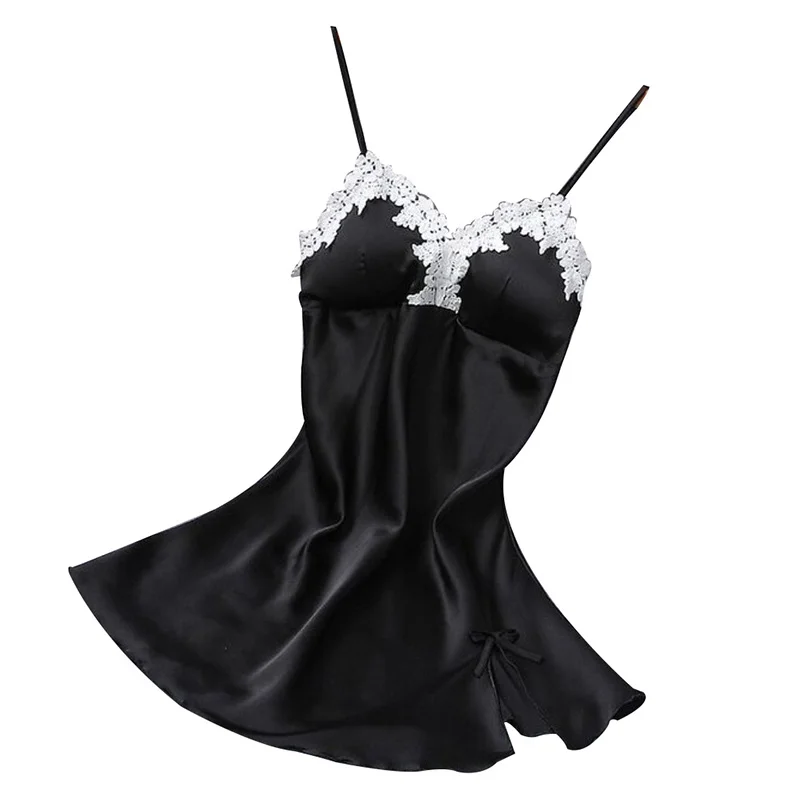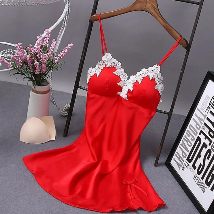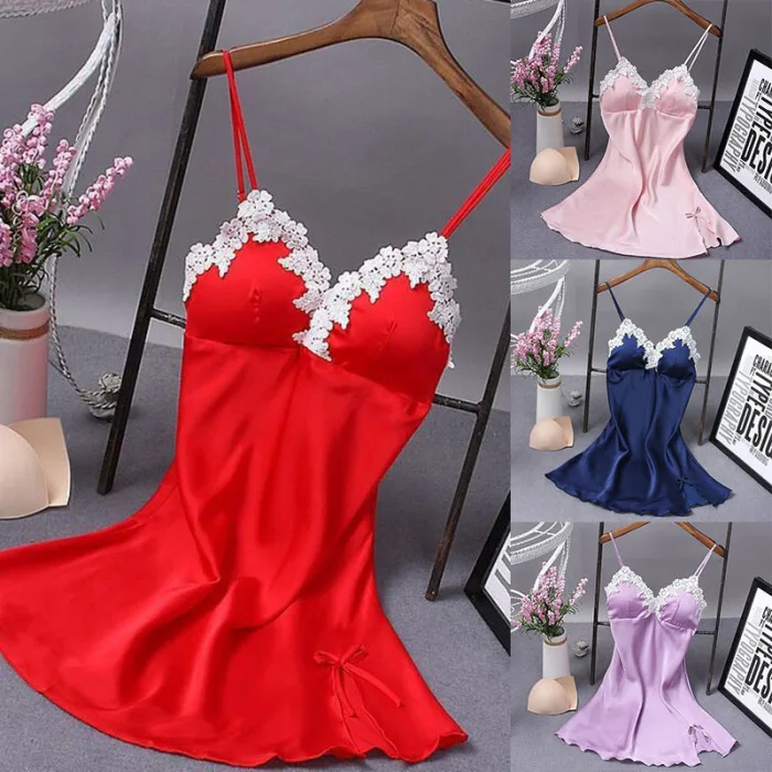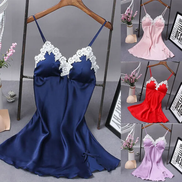 Женское шелковое кружевное белье с V-образным вырезом, домашнее нижнее белье большого размера, ночная рубашка