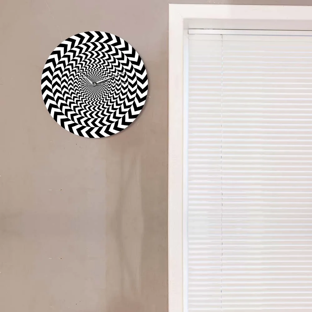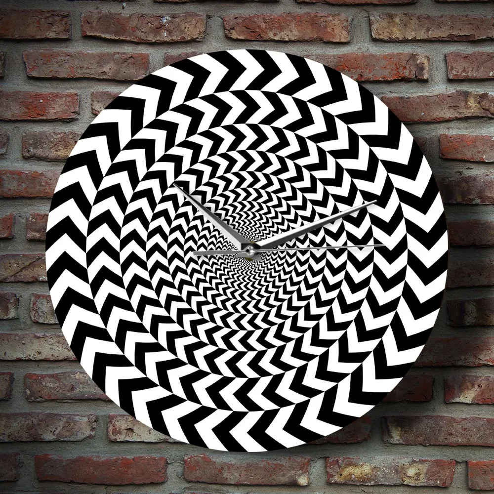 Гипнотические черно-белые 3D видения крутые Декорации для интерьера гостиной спиральные геометрические Оптические иллюзии не тикающие настенные часы