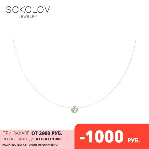 Колье на леске SOKOLOV из серебра с фианитом, Серебро, 925, Оригина...