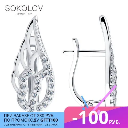 Серьги SOKOLOV из серебра с фианитами, Серебро, 925, Женские, Серьг...