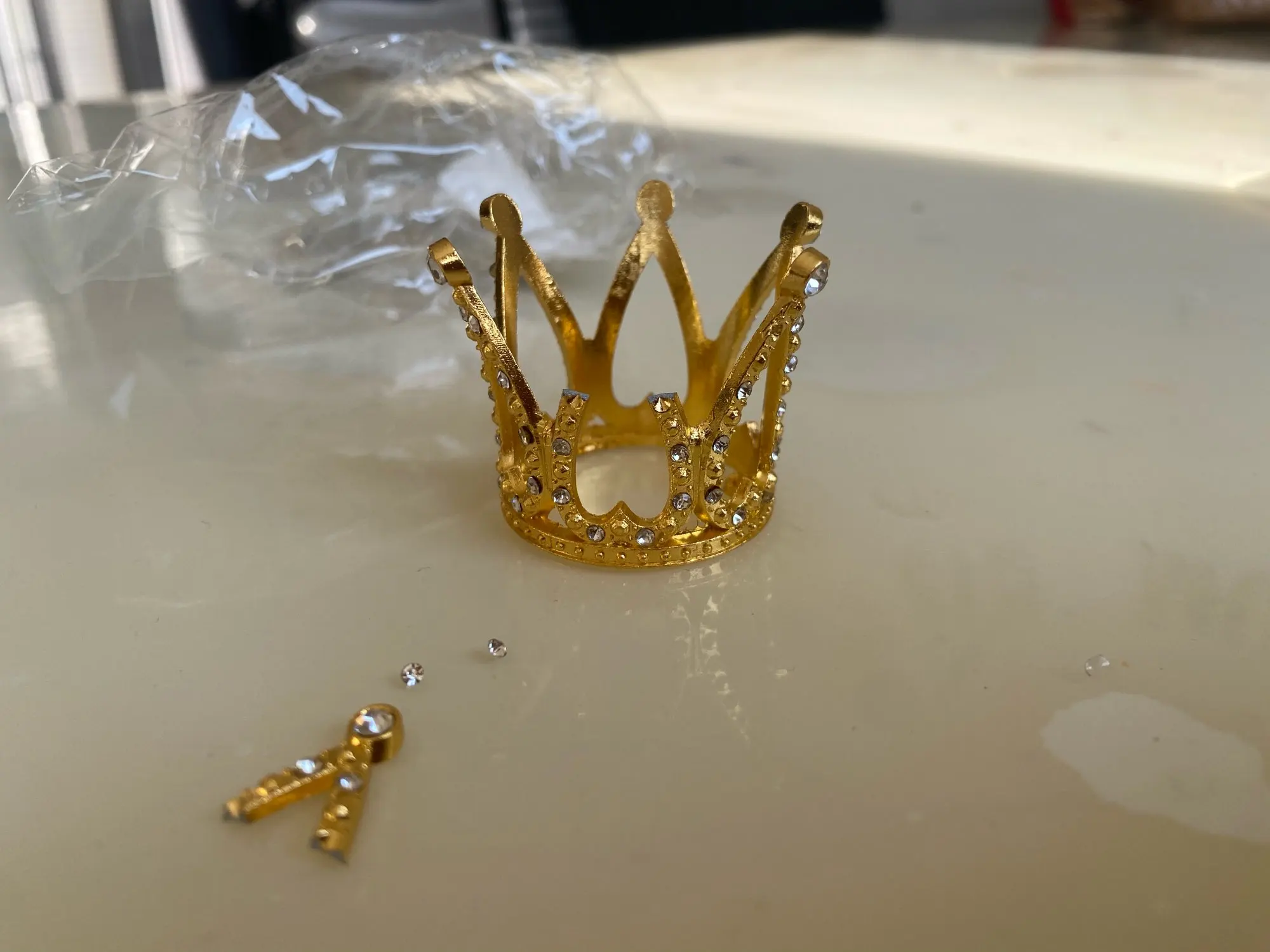 Золотая Корона сломана. Я склею его вместе. Он должен быть упакован и защищен лучше перед отправкой.