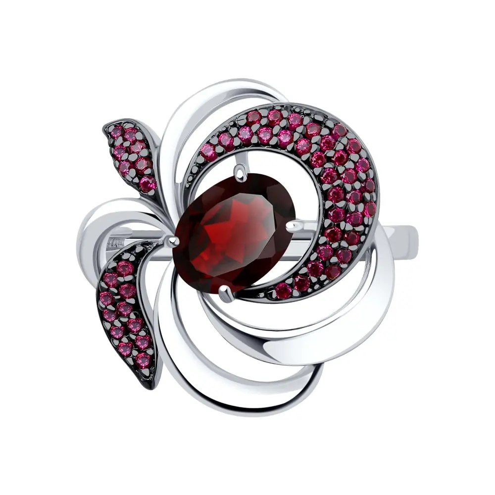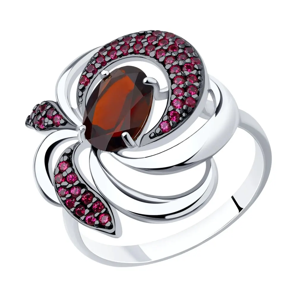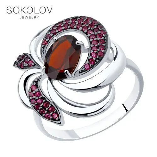 Кольцо SOKOLOV из серебра с гранатом и красными фианитами, Серебро, 925, Женское, Оригинальная продукция