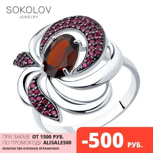 Кольцо SOKOLOV из серебра с гранатом и фианитами, Серебро, 925, Жен...