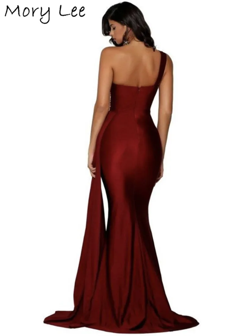 Вечерние платья на одно плечо, шелковые атласные вечерние платья до пола на молнии, со шлейфом и юбкой-годе, Платья для вечеринок