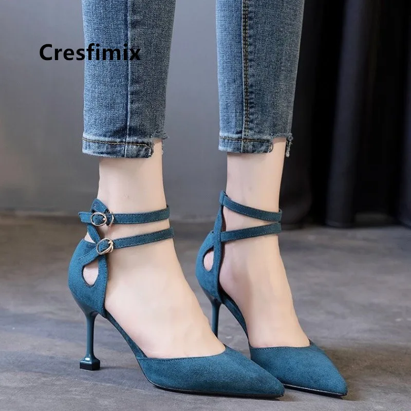 Туфли женские на высоком каблуке, с пряжкой и ремешком, a5724