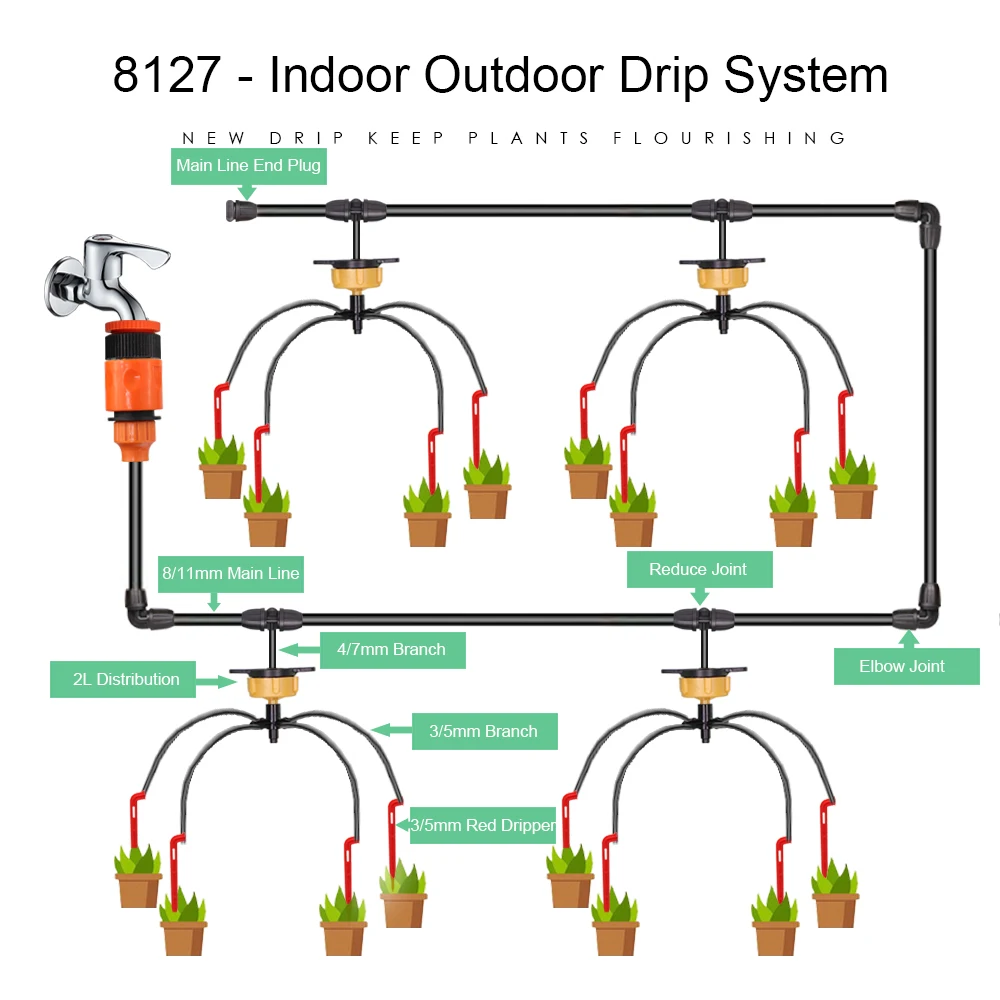 Система капельного орошения MUCIAKIE 5M-30M 811mm, главная линия, комнатная теплица, комплект для полива сада, ороситель