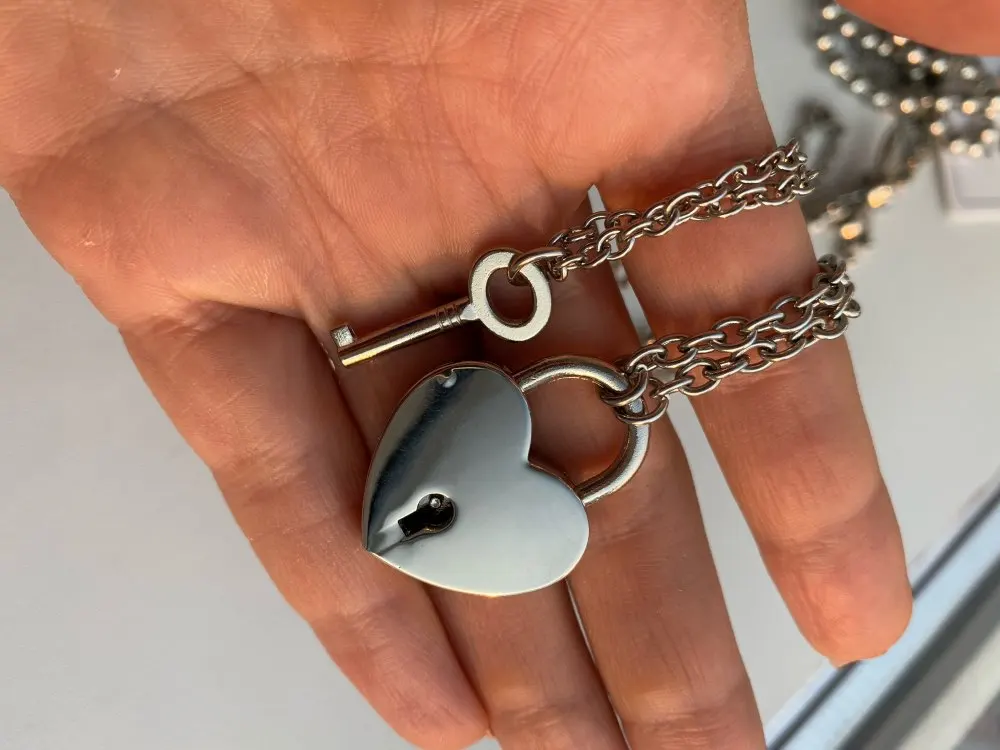 Очень классная вещь. Заказывалось девушке и мне , как парная вещь. Замочек работает, открывается ключём. Доставка быстрая.