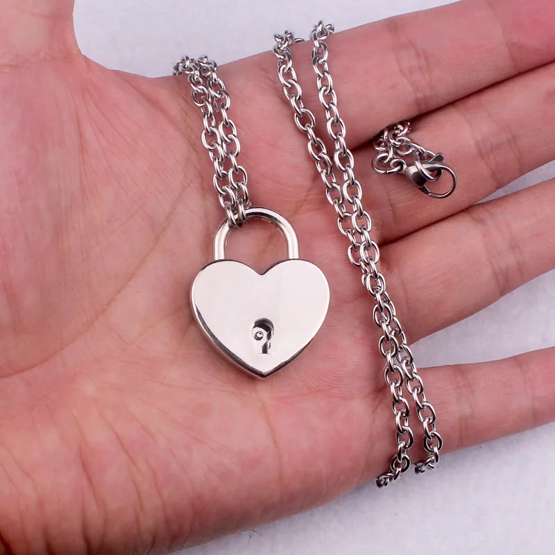 Новый многослойная цепочка хип-хоп панк из нержавеющей стали замок ожерелье для мужчин рок сердце замок с ключом ожерелья для женщин