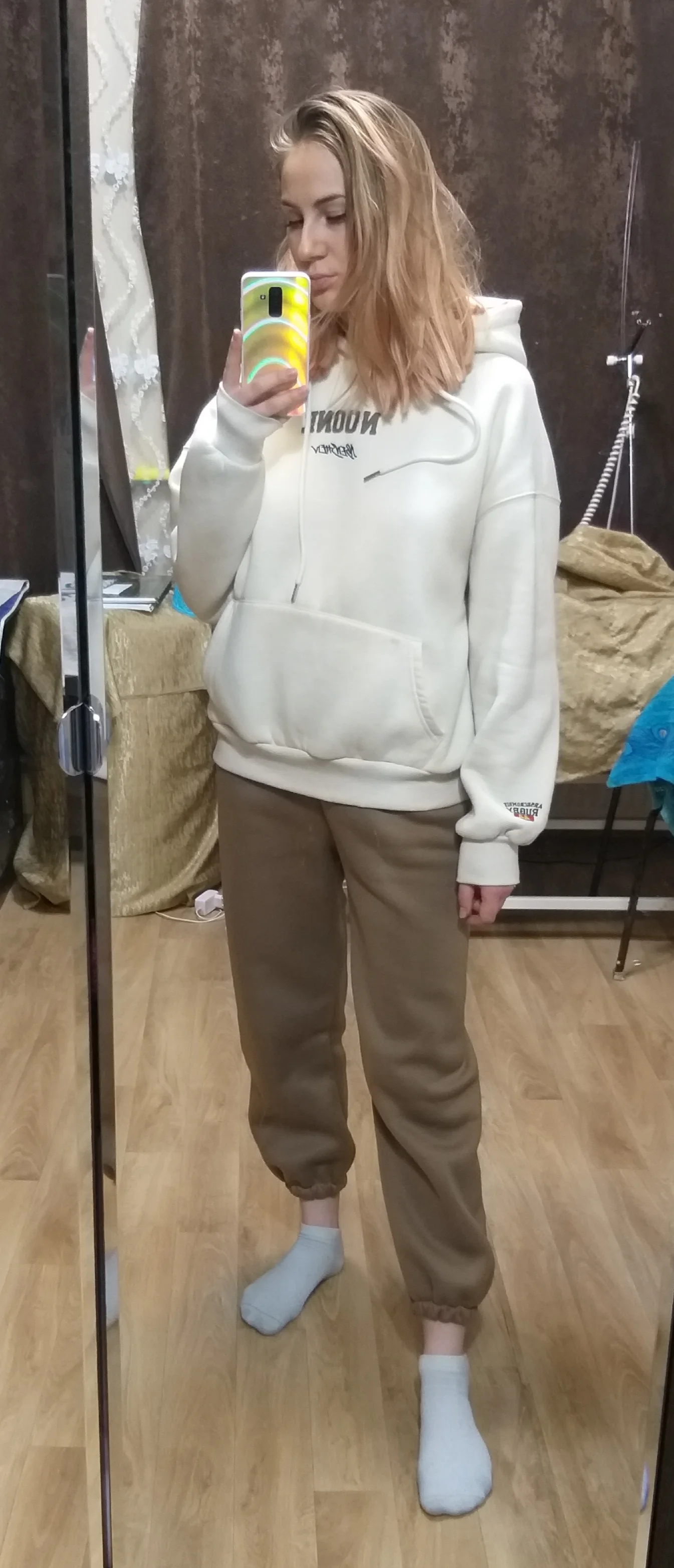 Штаны классные, внутри на флисе, очень мягкие. свободные, выглядят хорошо, размерная сетка соответствует. жаль, что нет карманов, но и без них, в целом, удобно. доехали быстро, гораздо быстрее, чем я ожидала. внутри лежал маленький подарочек, за него спасибо)
