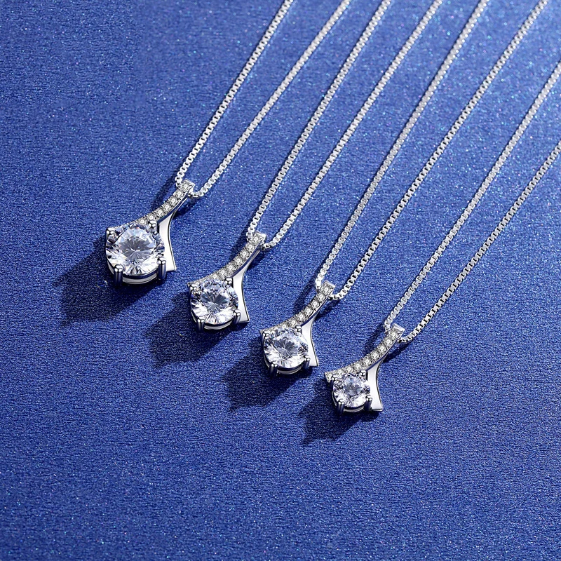 BOEYCJR 925 серебро 0.5ct1ct2ct F цвет Муассанит VVS обручальные кольца Элегантное свадебное ожерелье с подвеской для женщин Подарок на годовщину