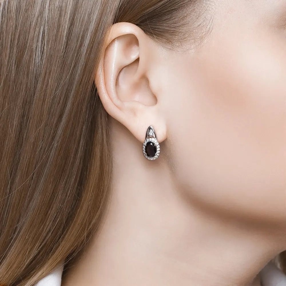 Серьги SOKOLOV из серебра с гранатами и фианитамиИзысканные серебряные серьги, декорированные гранатами и фианитами, станут ярким акцентом повседневных образов или идеальным дополнением вечерних. Сияющая россыпь фианитов подчёркивает эффектный контраст серебра и багряно-красных гранатовых вставок. Универсальная форма и надёжный английский замок позволят носить украшение так часто, как вам этого хочется.