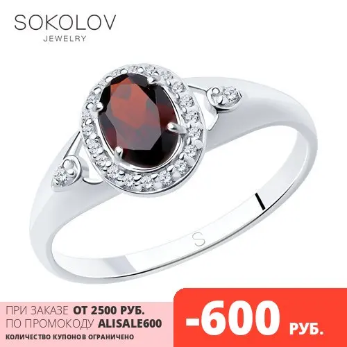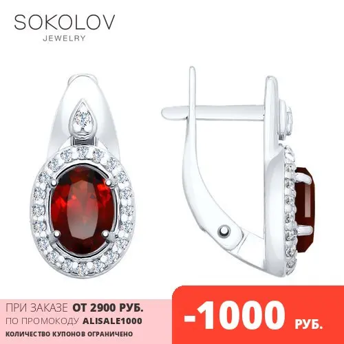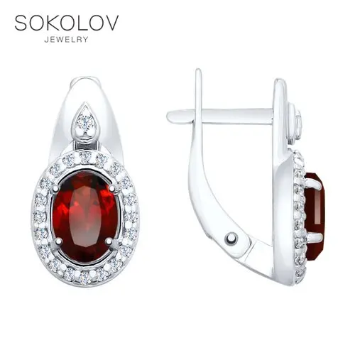Серьги SOKOLOV из серебра с гранатами и фианитами, Серебро, 925, Женские, Серьги 2022 тренд, Оригинальная продукция