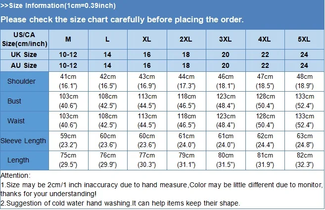 Size TypePlus Size M L XL XXL 3XL 4XL 5XL