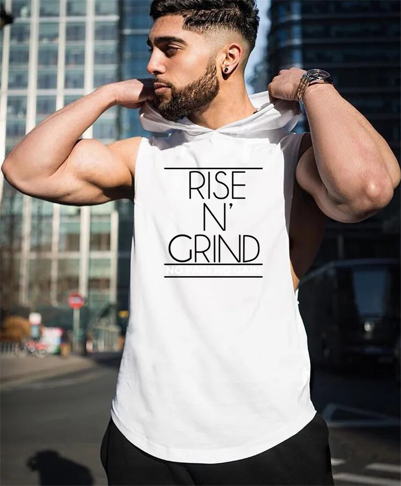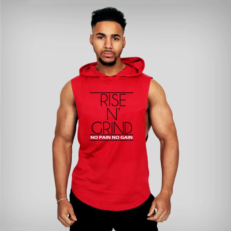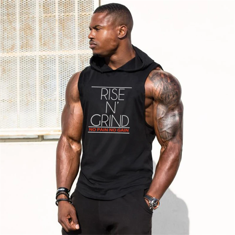 Мужская хлопковая майка для фитнеса, с капюшоном, для занятий спортом