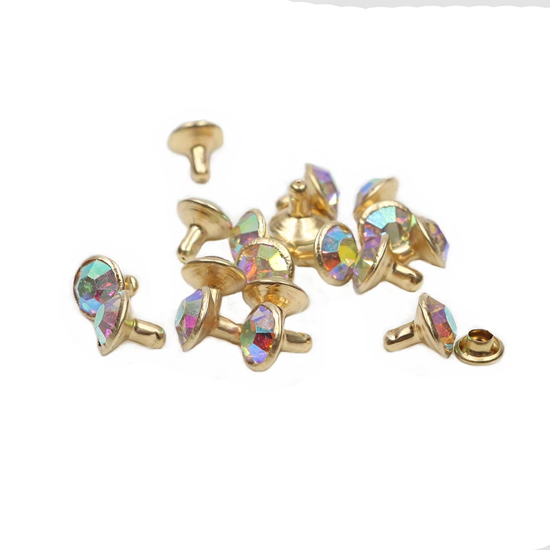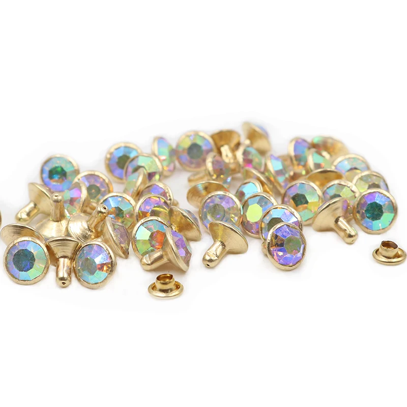 100 комплектов 8 мм AB цветные хрустальные заклепки из горного хрусталя золотые металлические шпильки для одежды сумка кожевенное ремесло заклепки