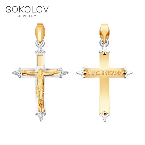 Крест SOKOLOV из комбинированного золота с гравировкой, Золото, 585...