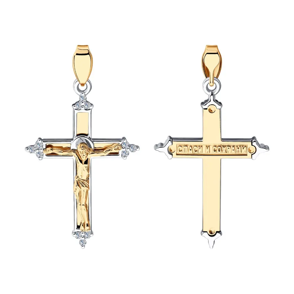 Крест SOKOLOV из комбинированного золота с фианитами, Золото, 585, ...